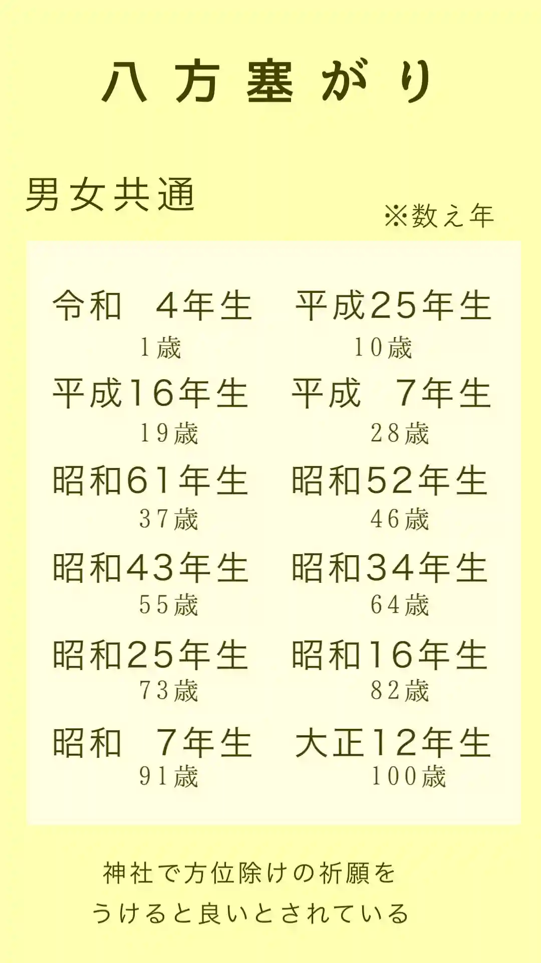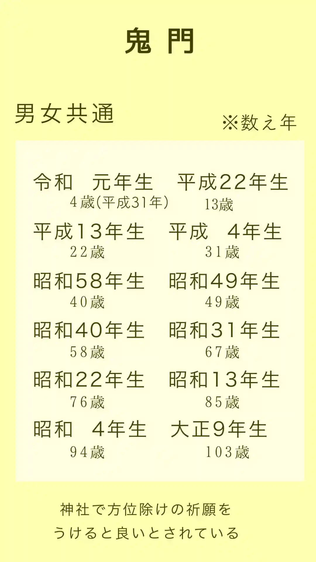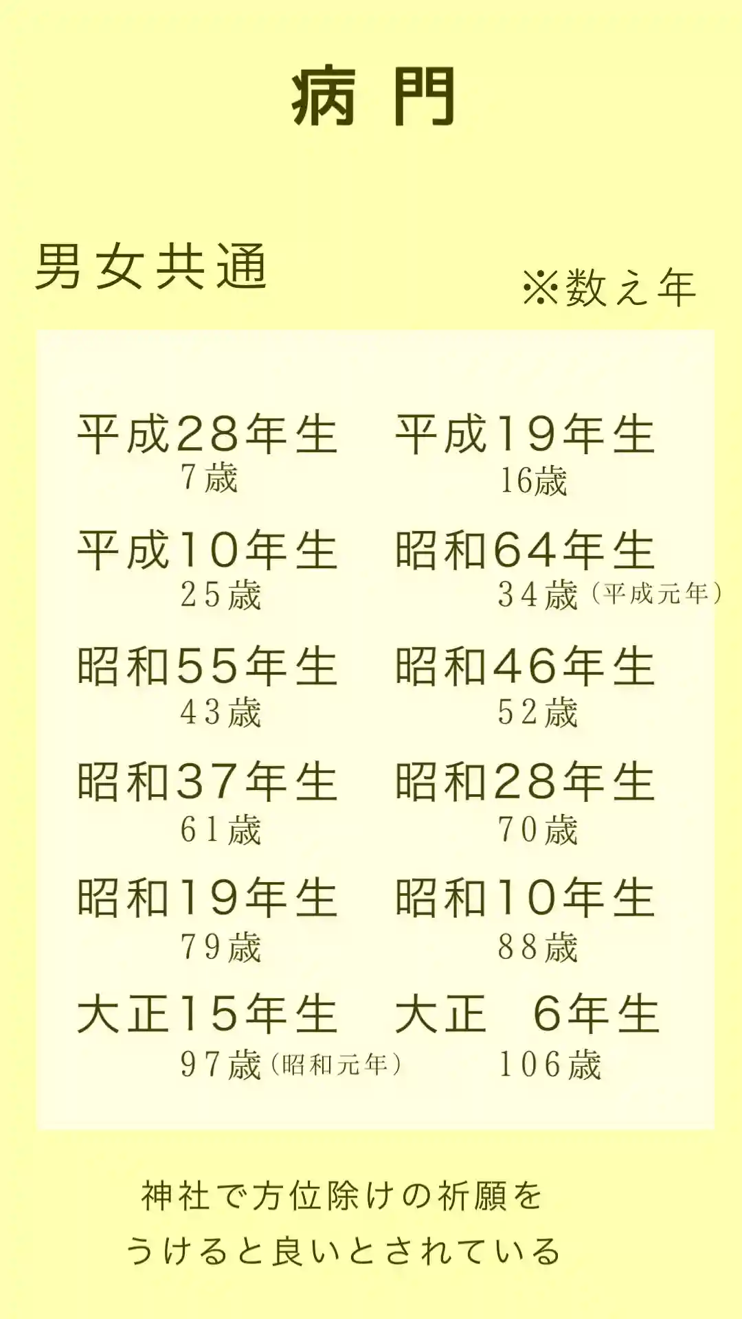 年回り早見表を