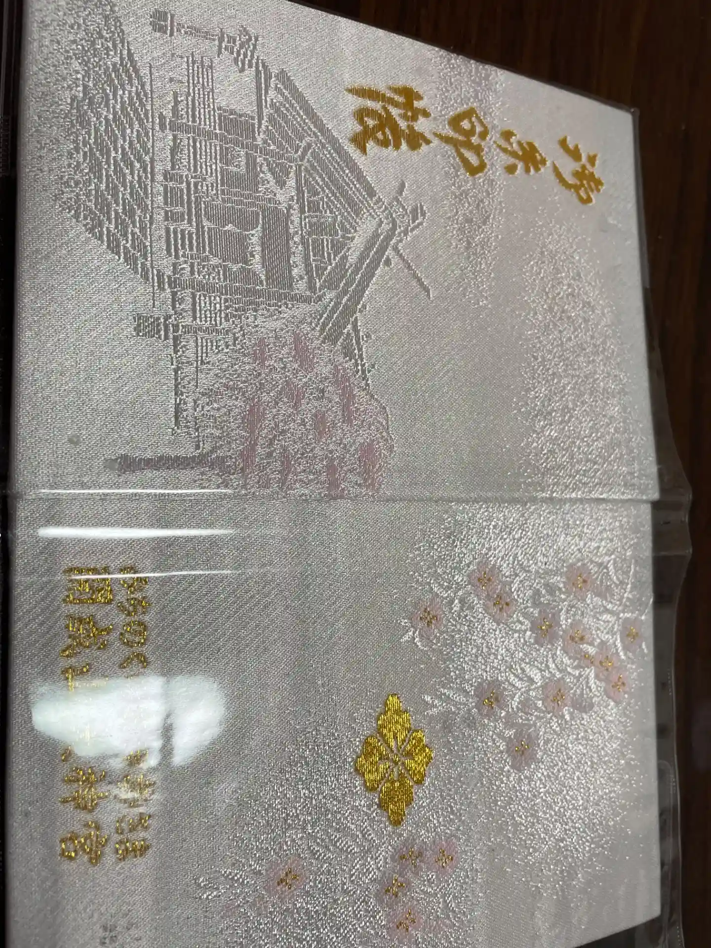 御朱印帳は拝殿と開成山の桜、色は淡いピンクで素敵なデザインです。