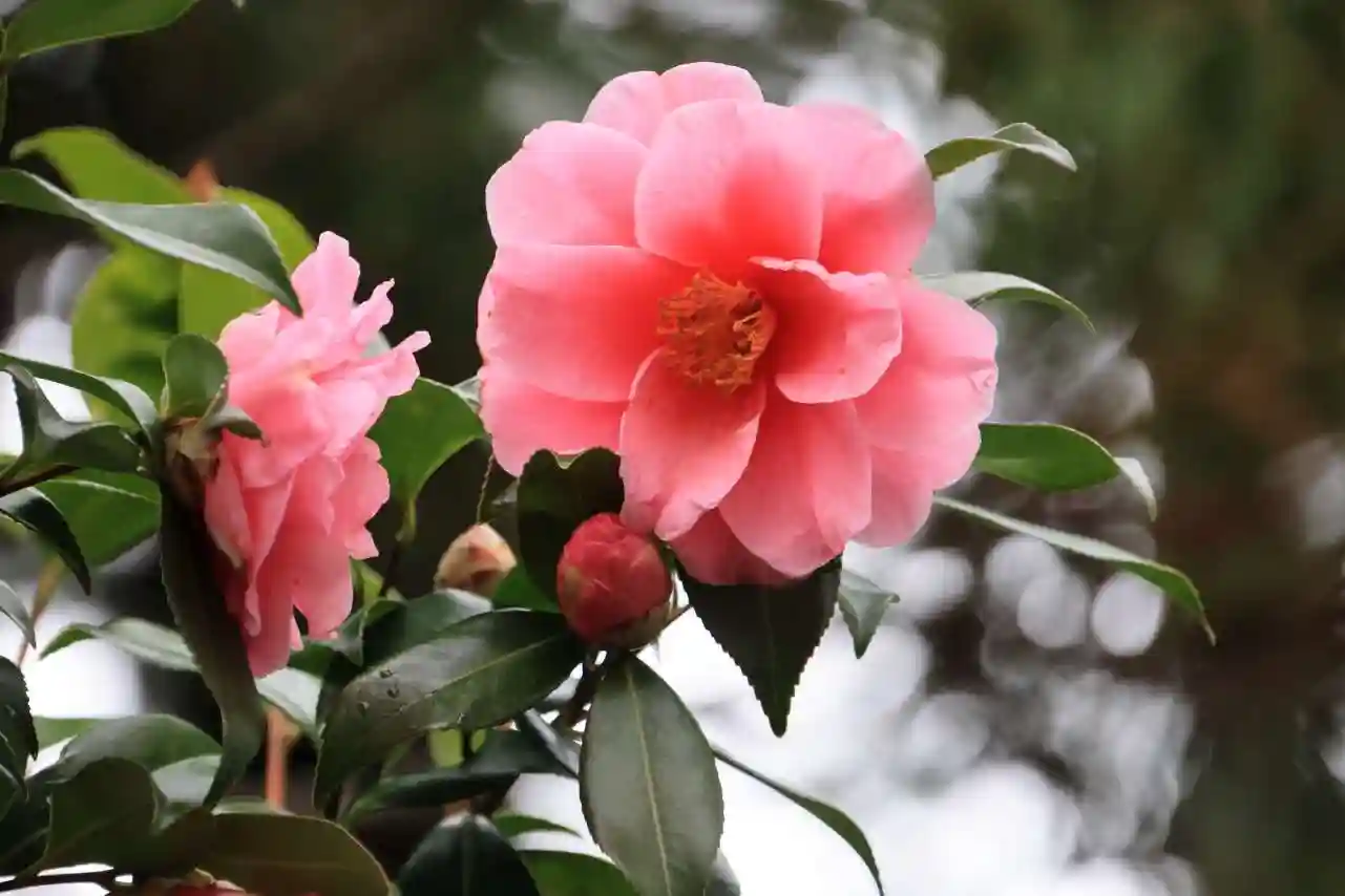 拝殿前のピンクの椿の花が奇麗でした
