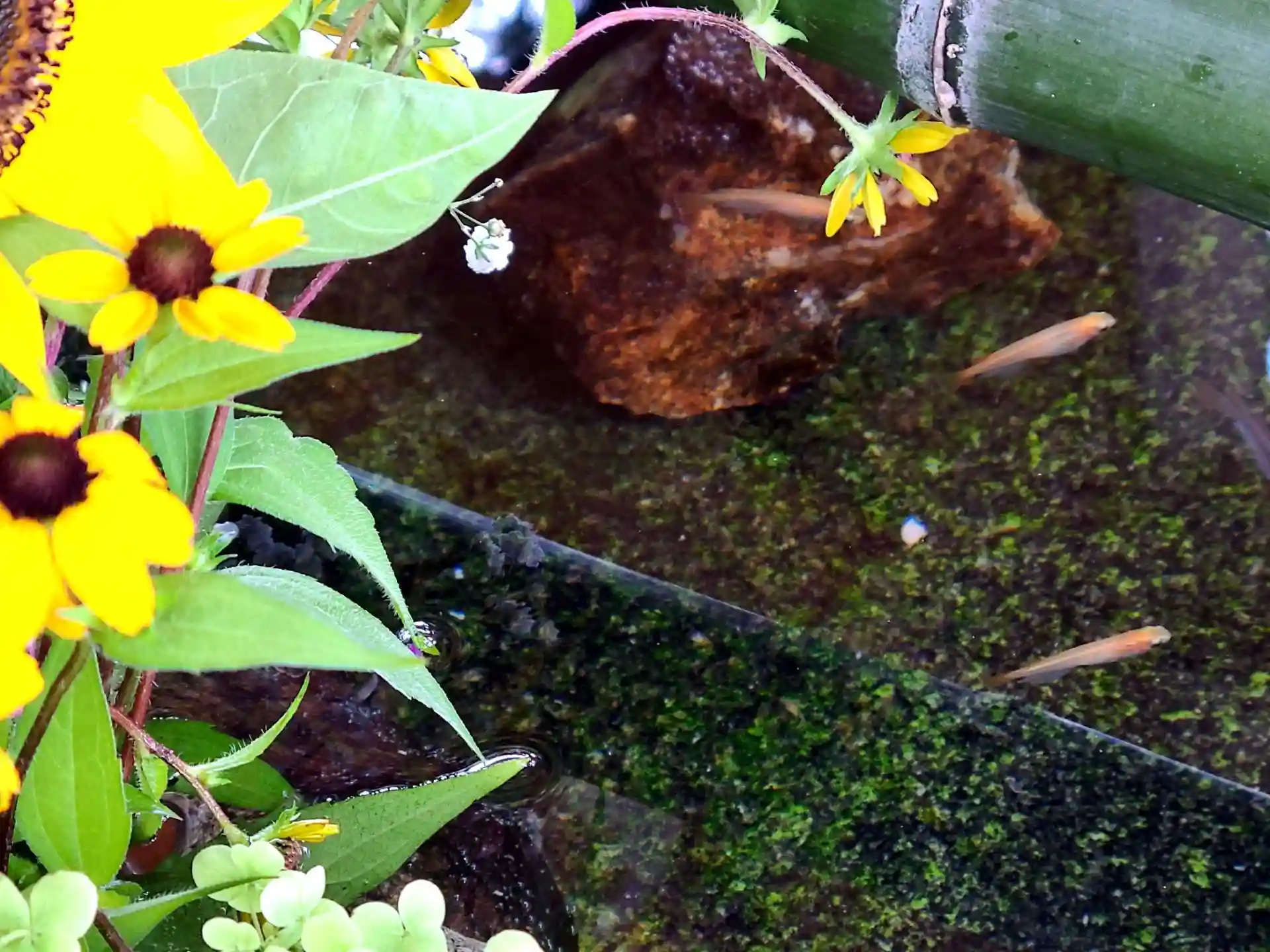 御手水には花が生けてあり、水中にはメダカちゃんが泳いでました。