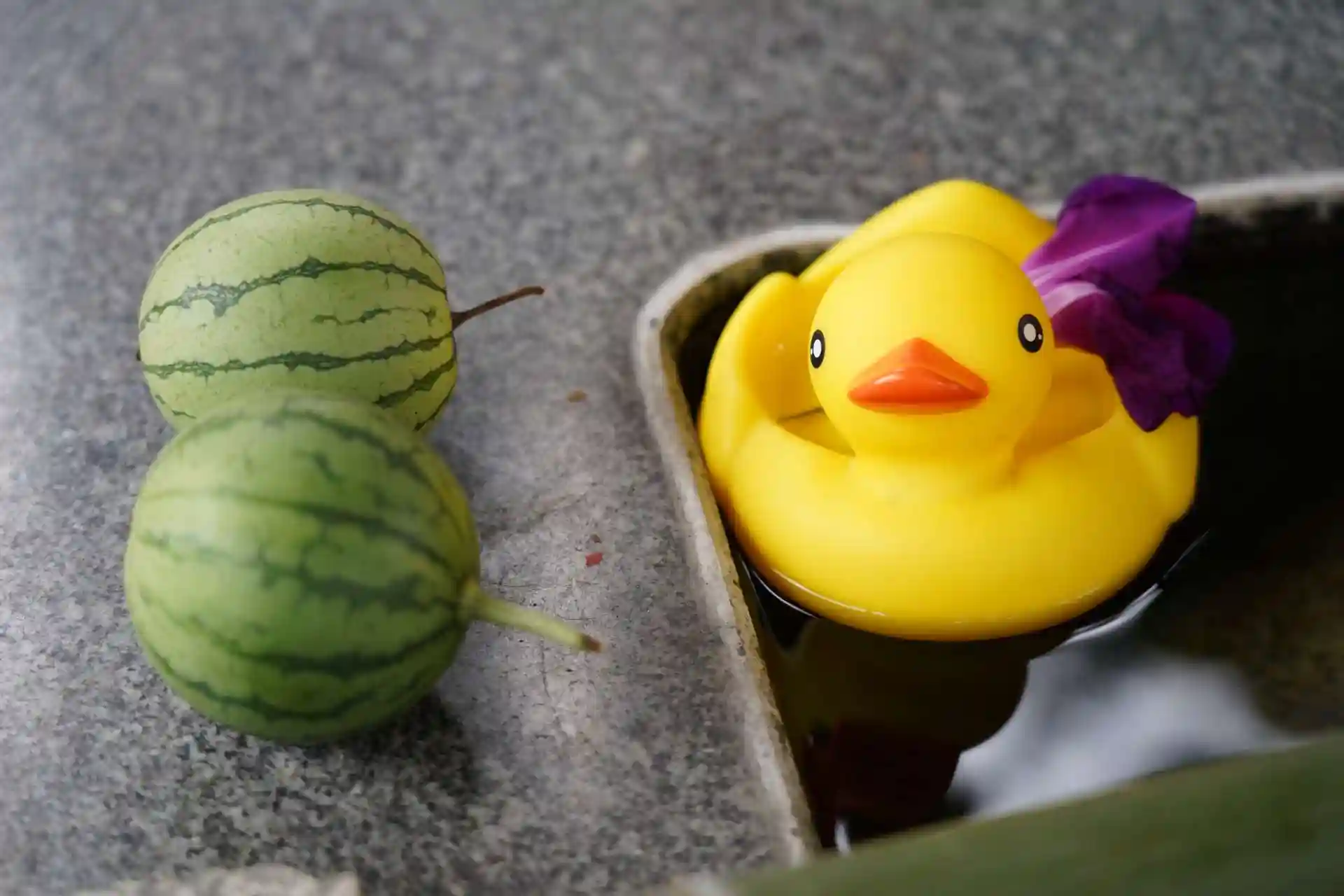 花手水と一緒にミニスイカがあり、食べたくなりました。