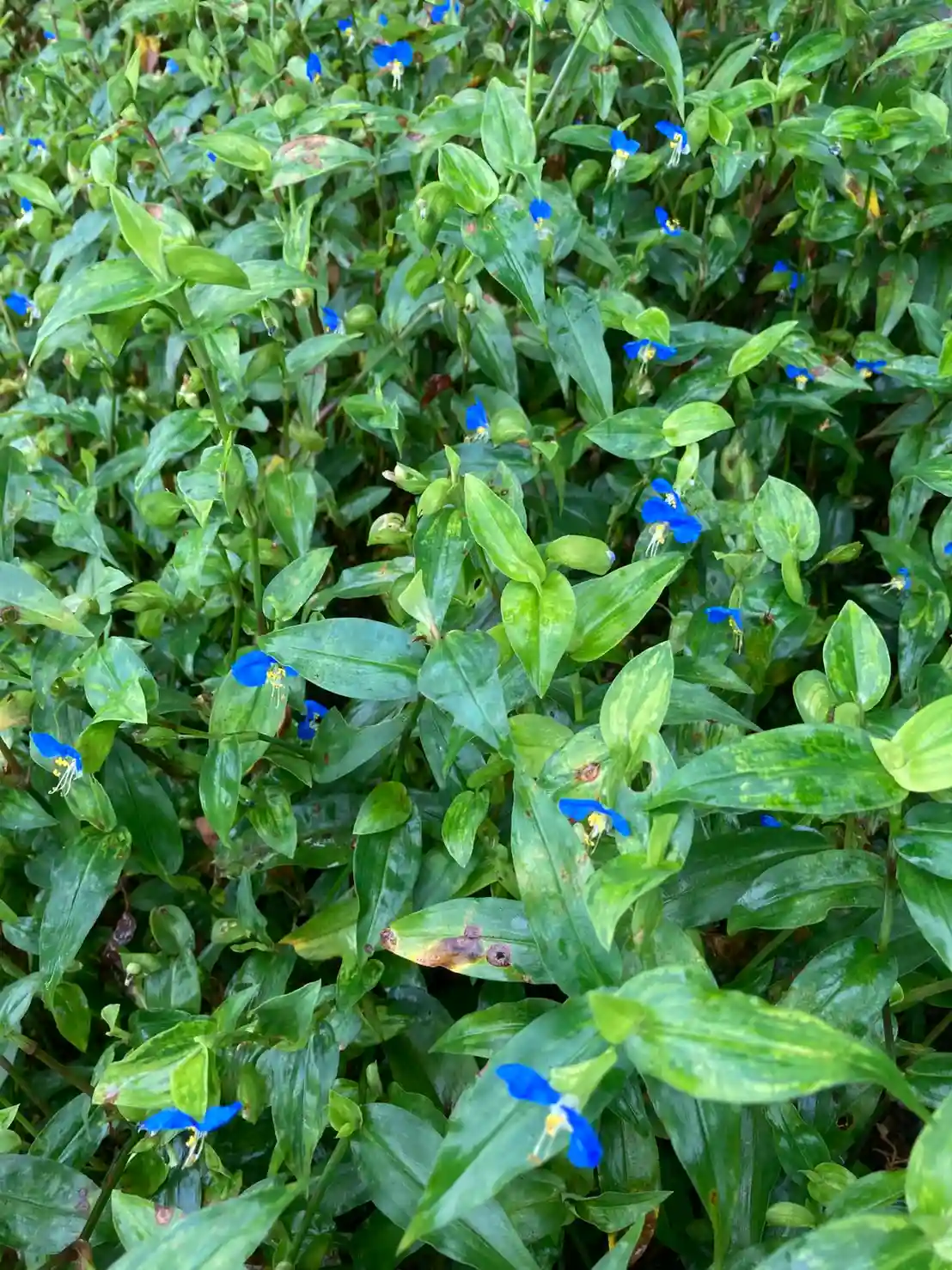 境内の土手にモサモサしている露草たち😊