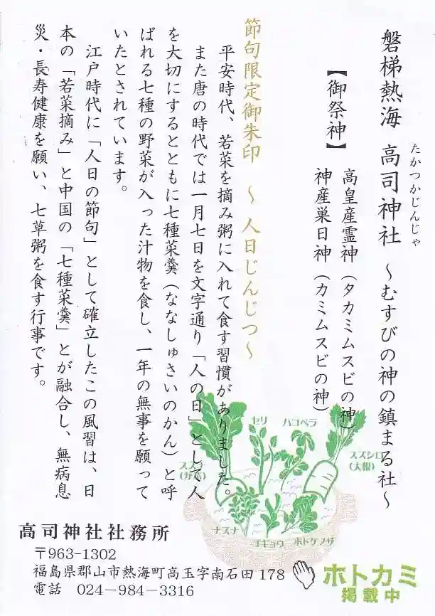 七草・節句限定御朱印「人日じんじつ」