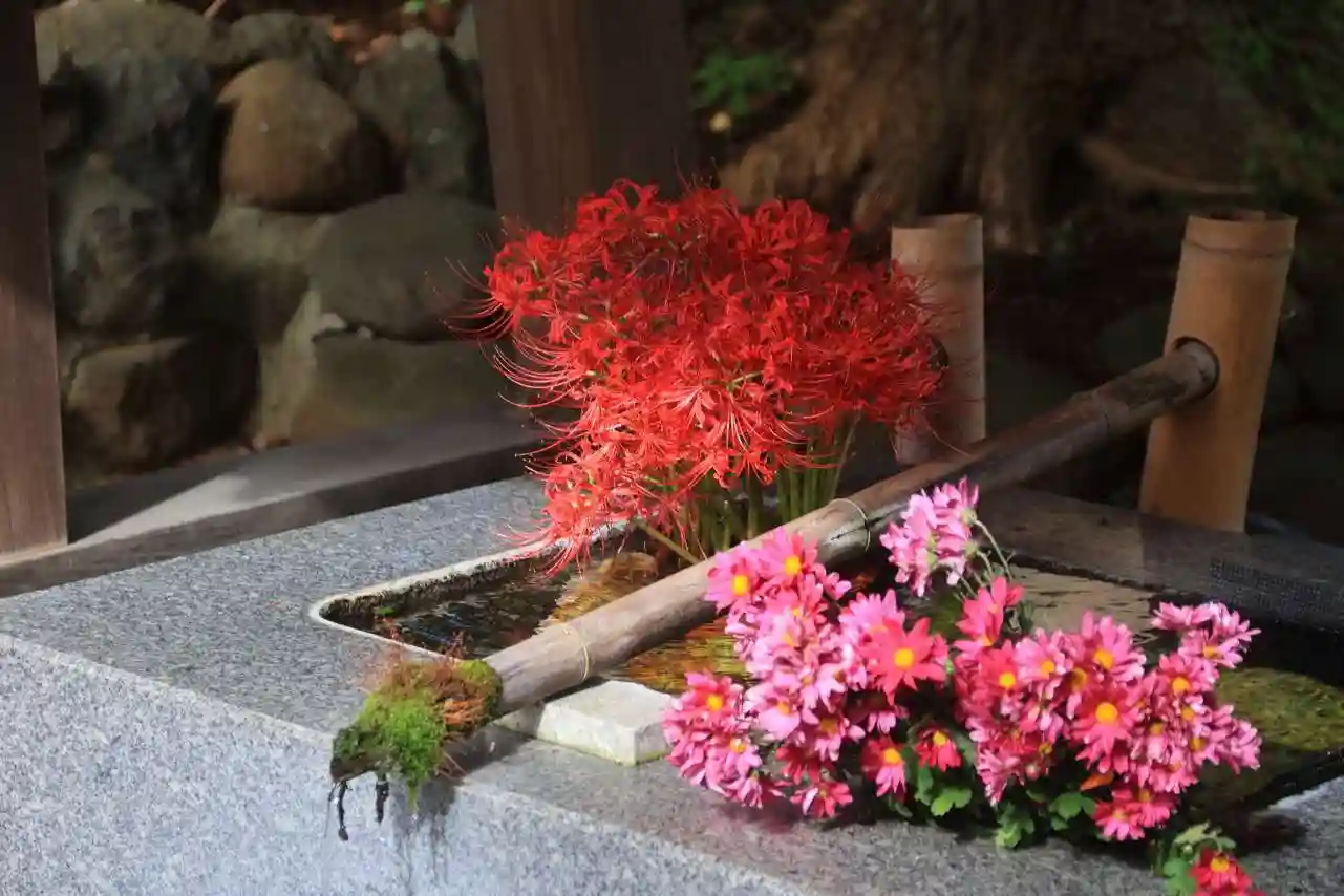 彼岸花の花手水