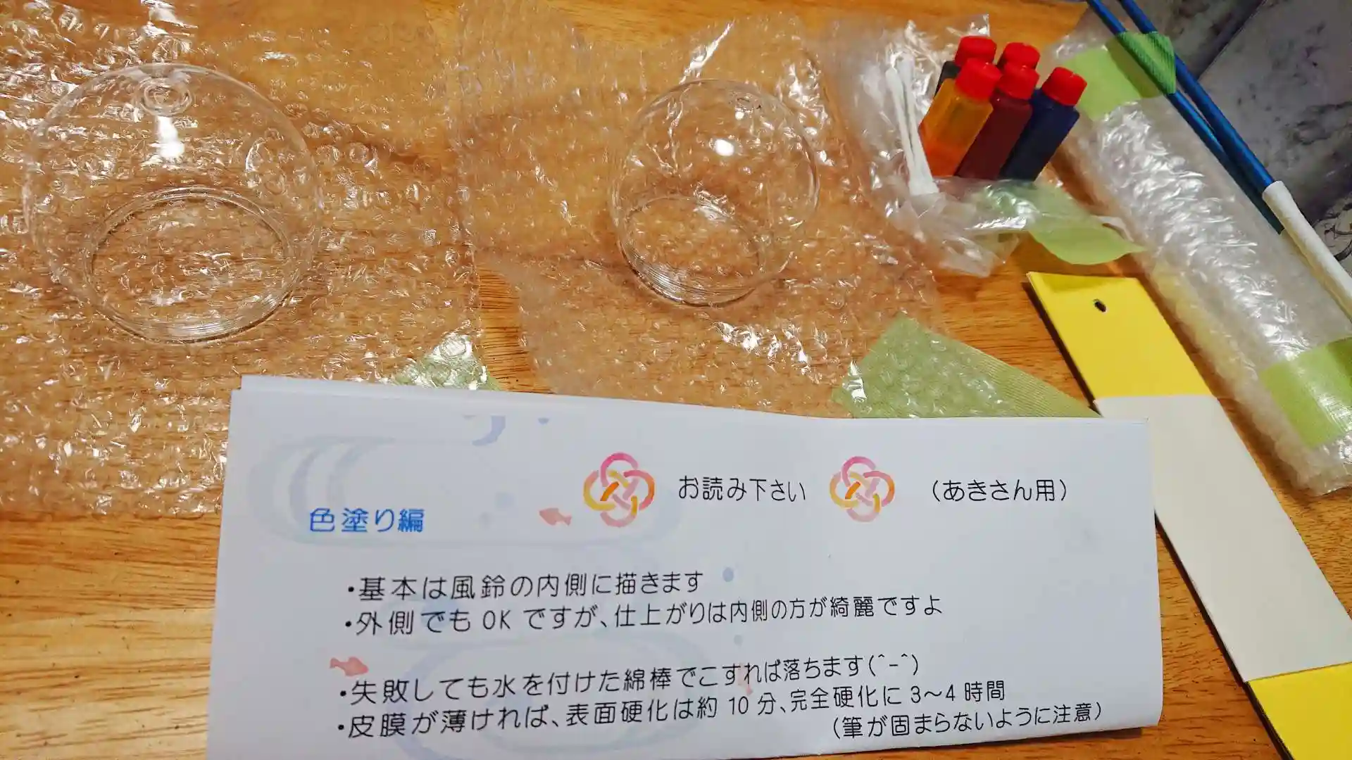 ガラスの内側、脱脂してあるので、描き終わって乾くまで触らないでくださいね🙏