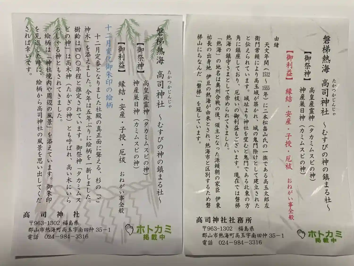 直書き、お初穂500円。15日以降、平日授与所休み