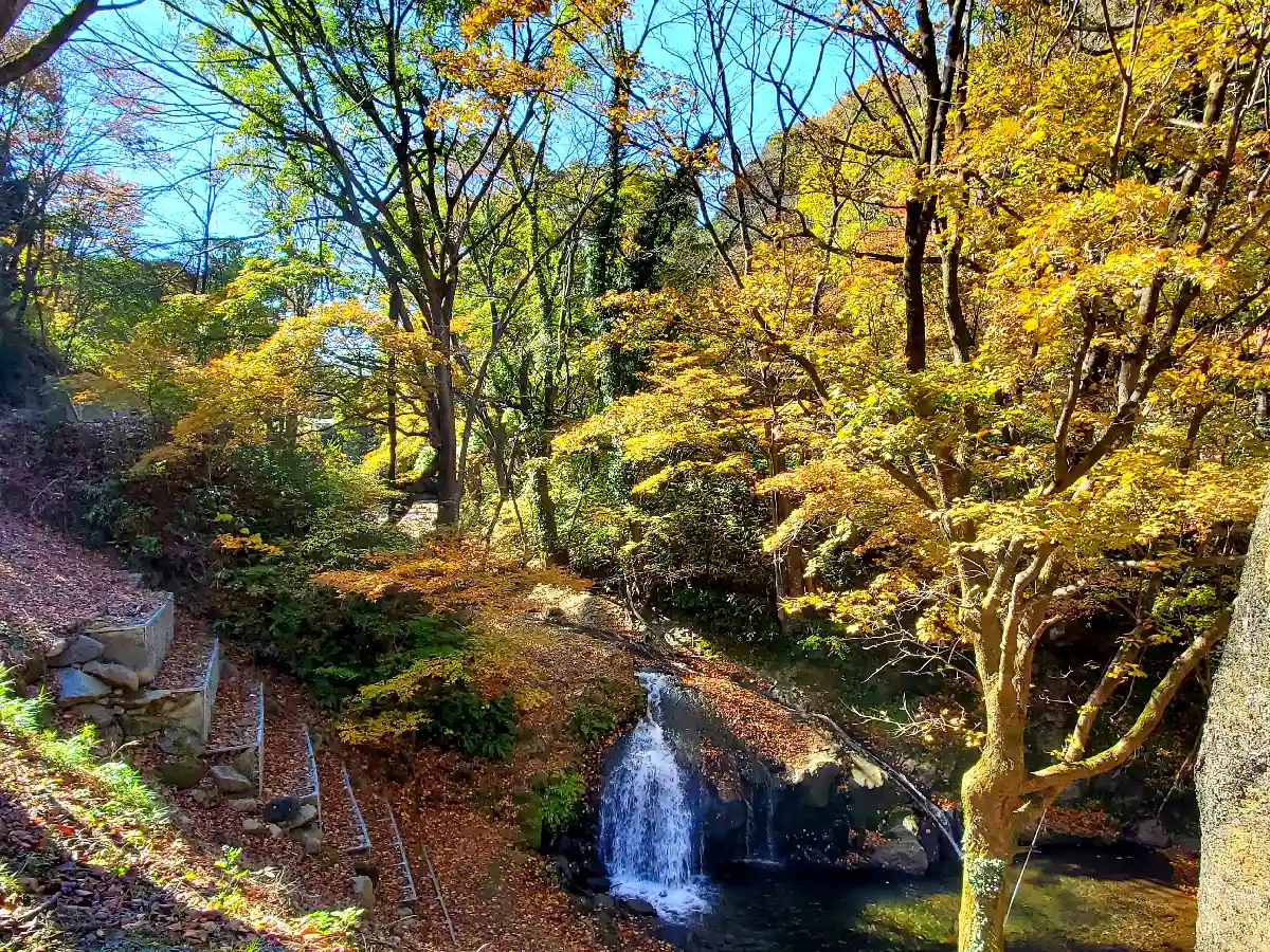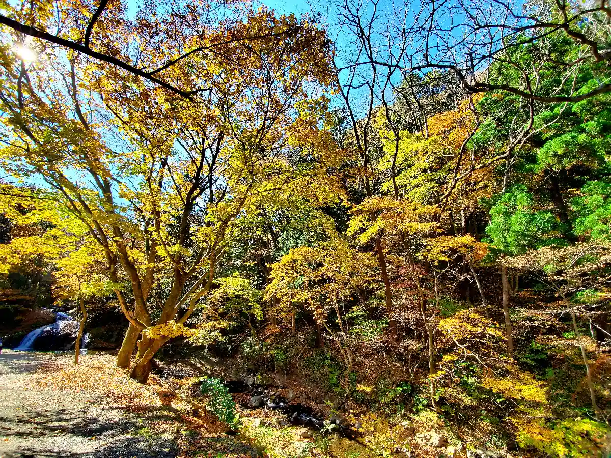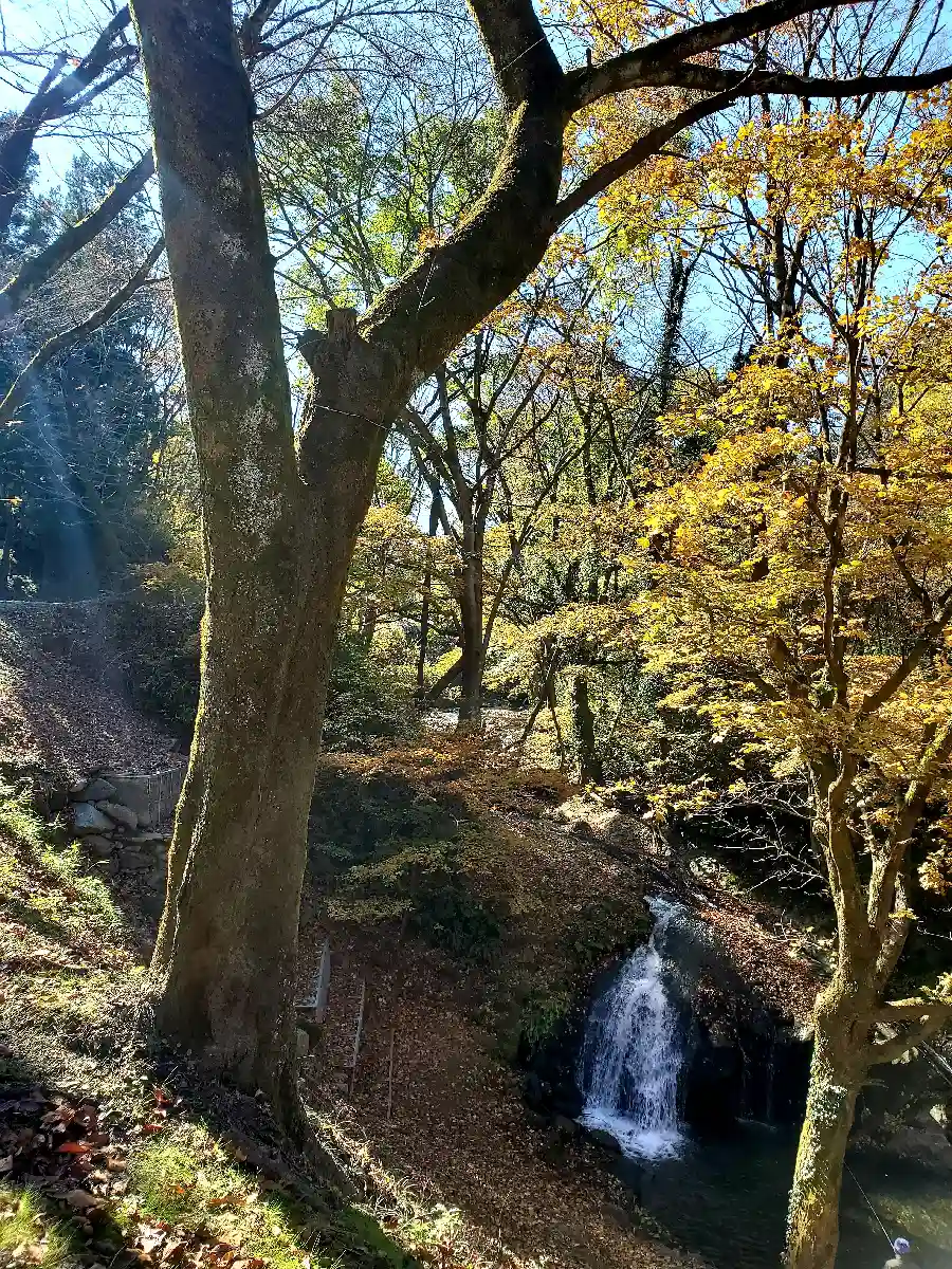 かなり朽ちた鳥居と古びた不動尊の直ぐ側の大峯不動滝周りは紅葉🍁が見頃を迎えていました😊