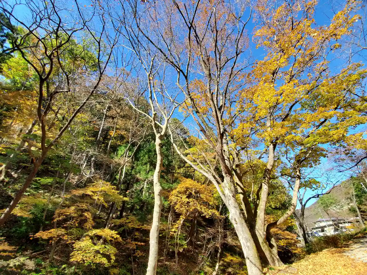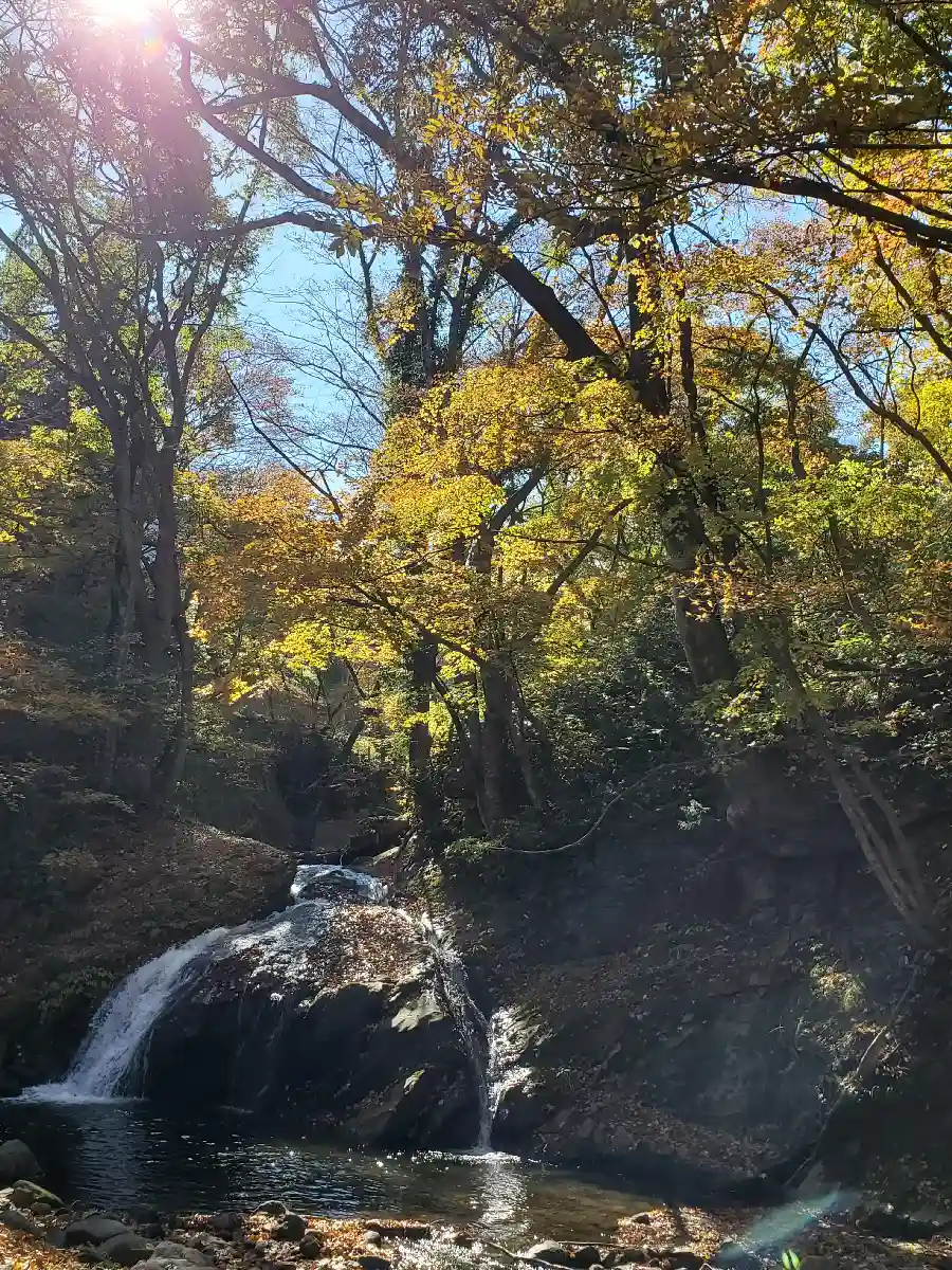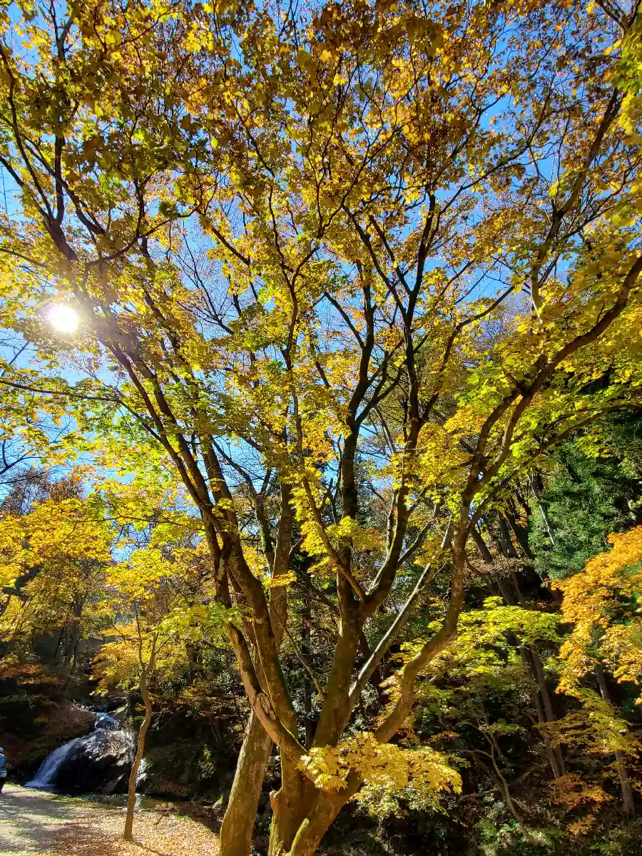 かなり朽ちた鳥居と古びた不動尊の直ぐ側の大峯不動滝周りは紅葉🍁が見頃を迎えていました😊