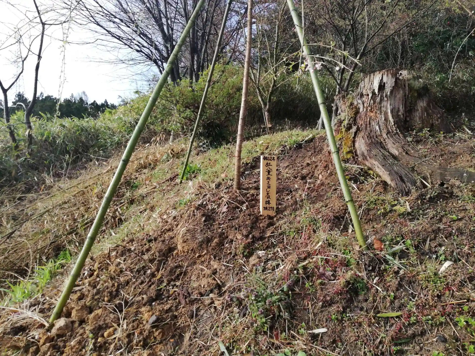 令和2年3月27日に植樹されたばかりの、紅八重キミヨしだれ桜。