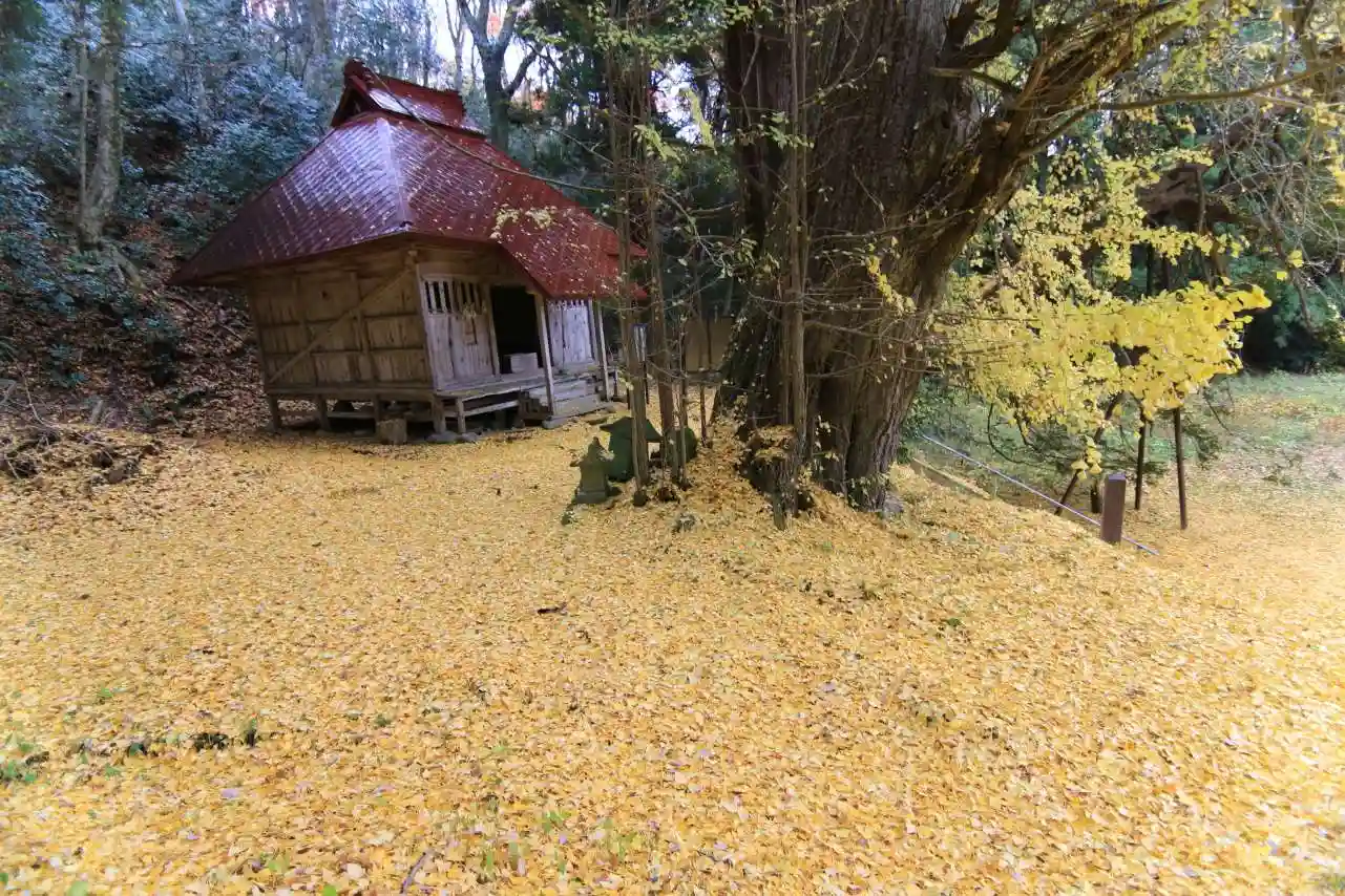 夏出の大イチョウの黄色い絨毯撮影に