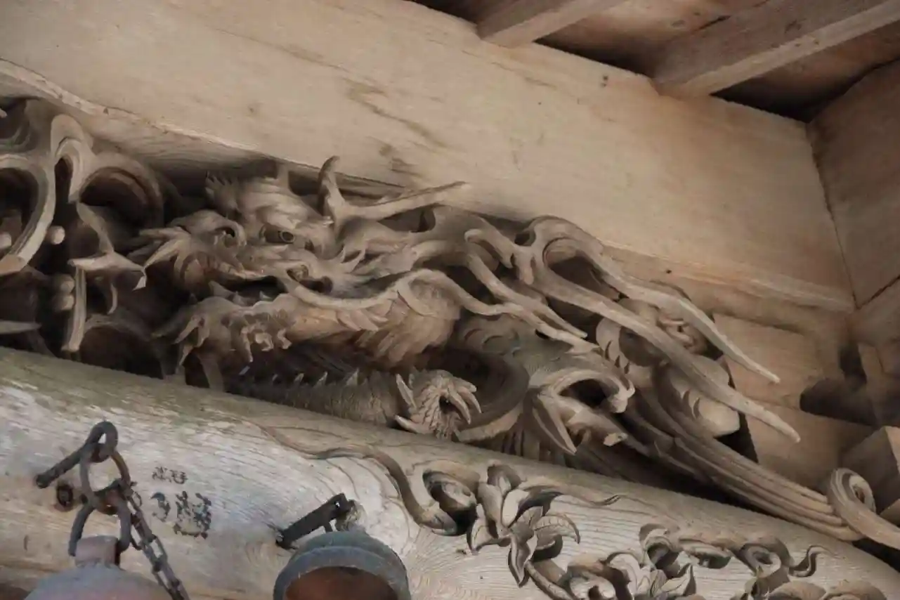 社殿の獅子と…