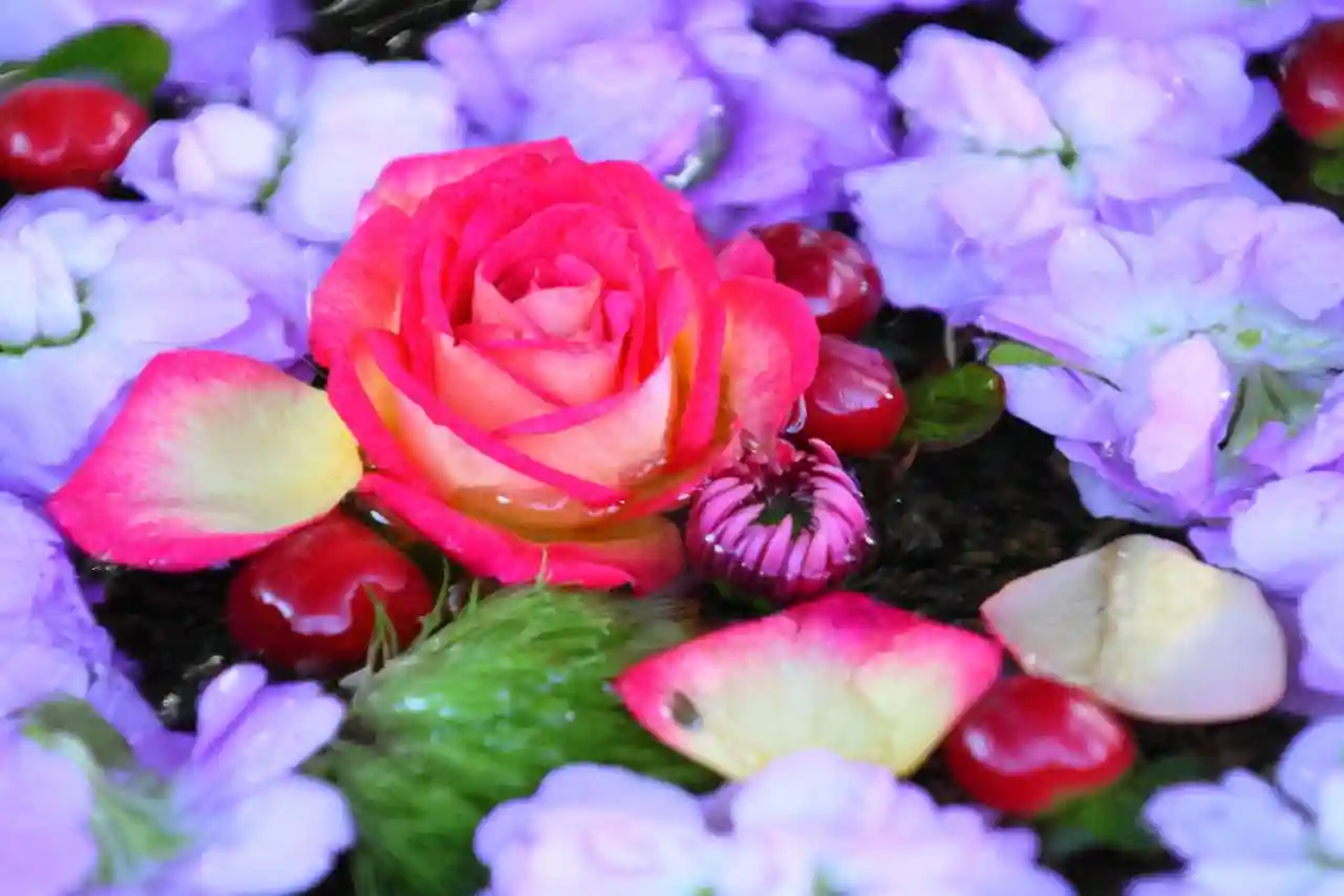 花手水、花に発…