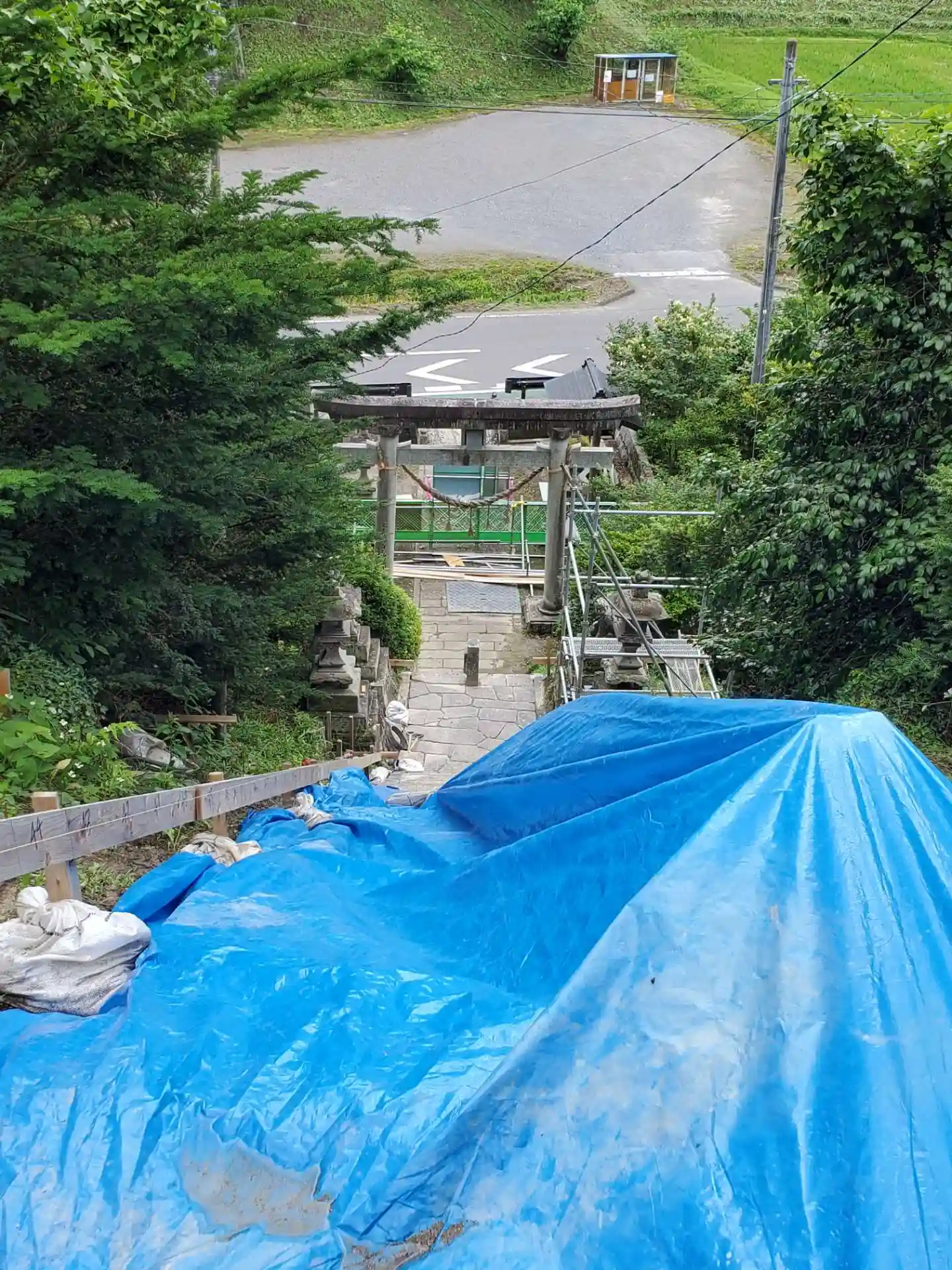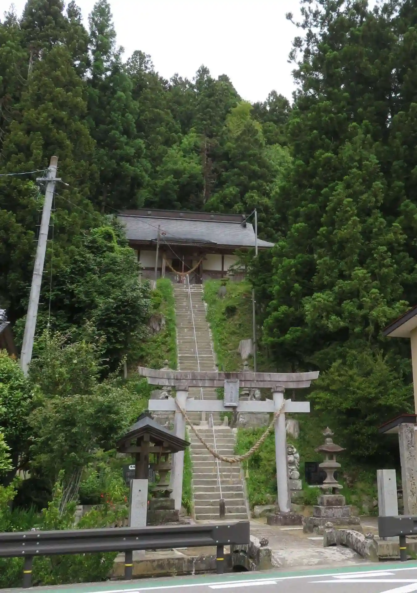 道路から急な石段や拝殿もみえま…