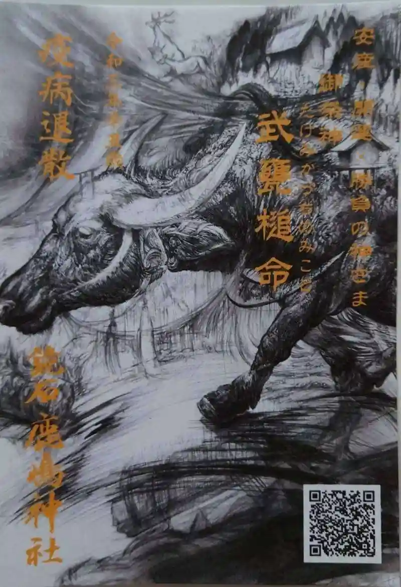 鏡石鹿嶋神社といえば挟み紙です。すごい迫力ある牛ですよね。(2021年の参拝です。)