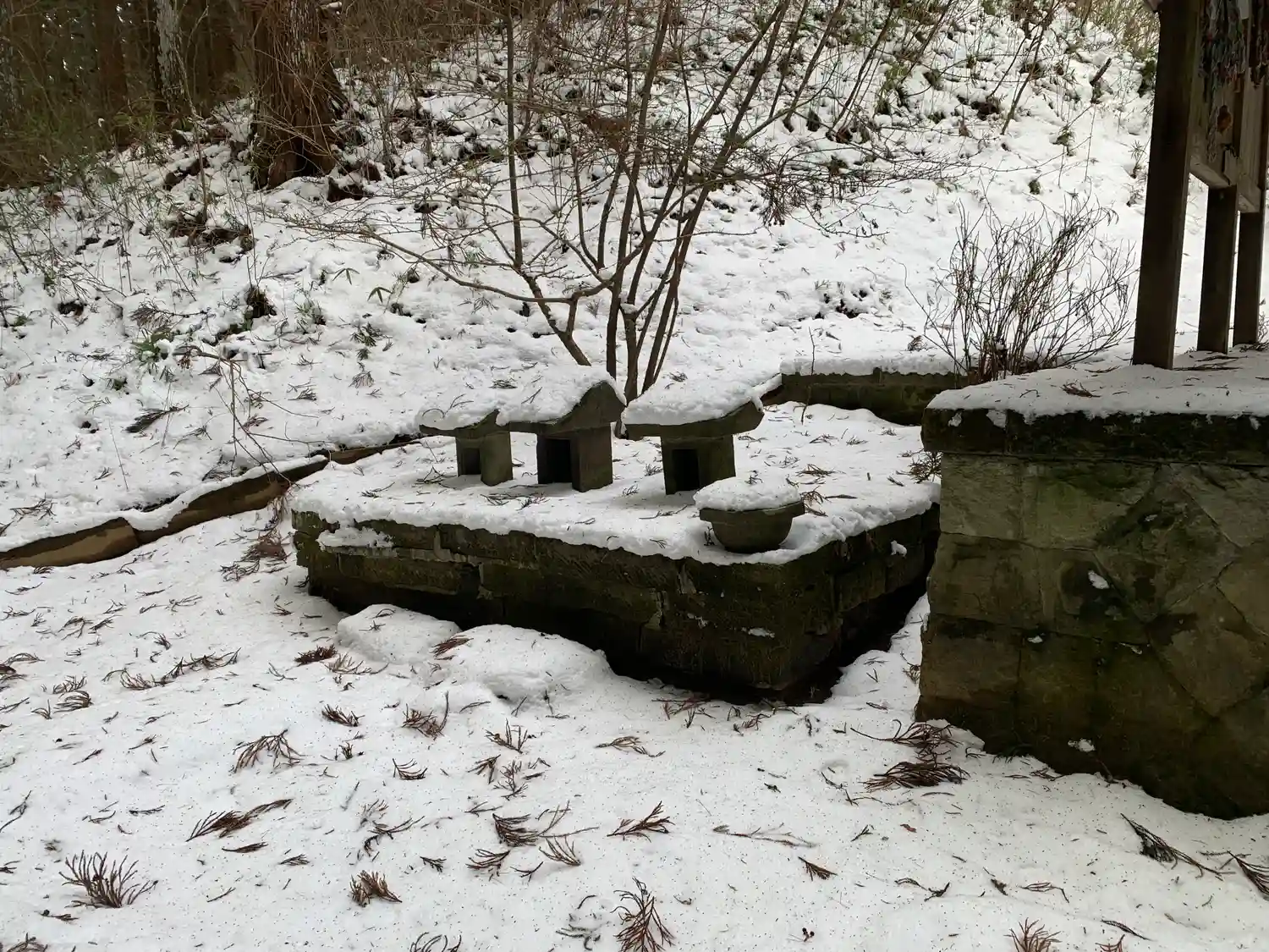 雪の残っている参道に足跡がいくつかありまして、こんな、雪でもお参りに来る人が居るんだなぁ、と信仰の…
