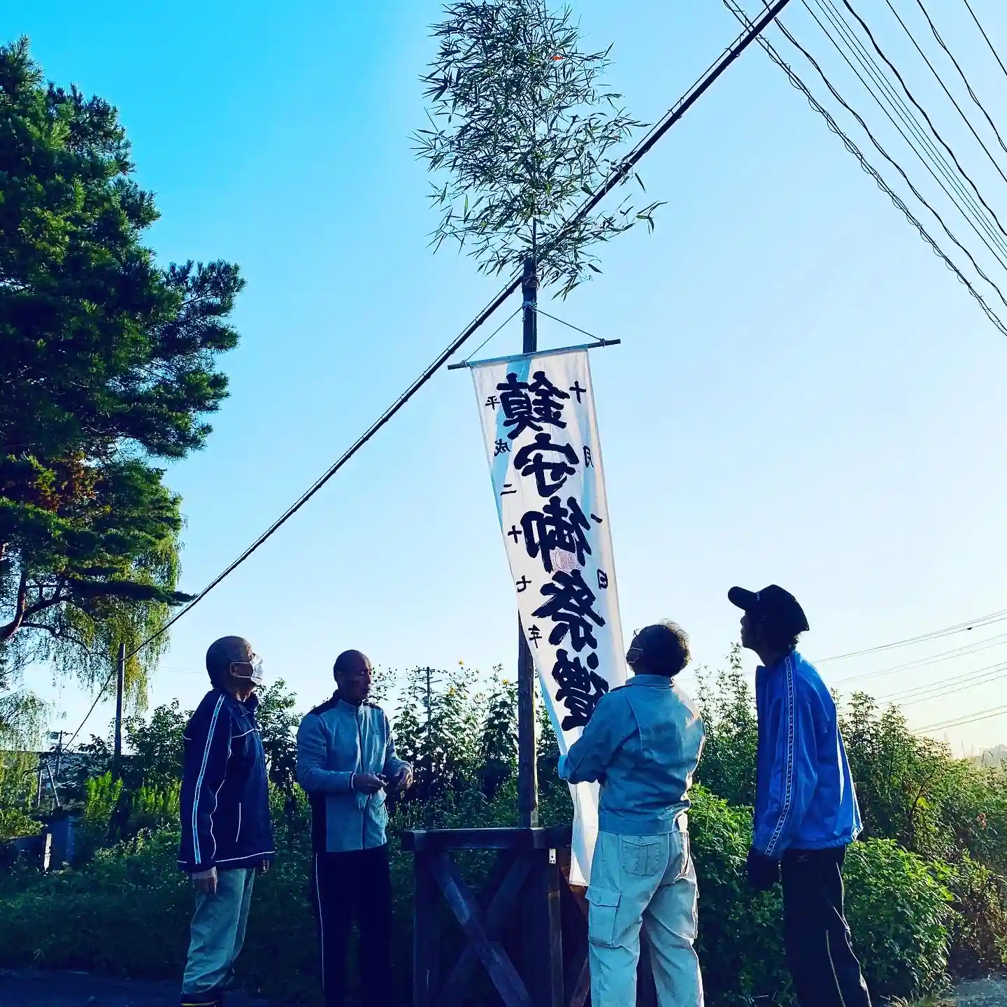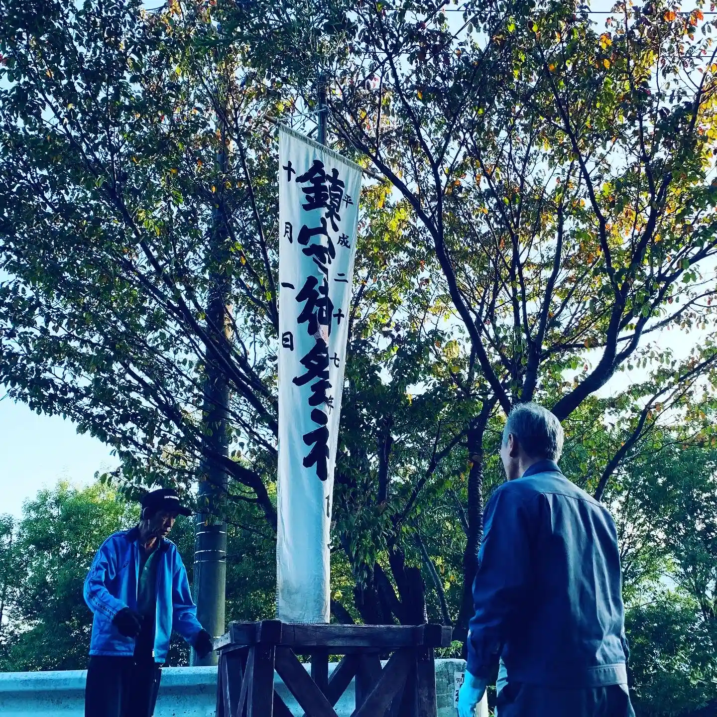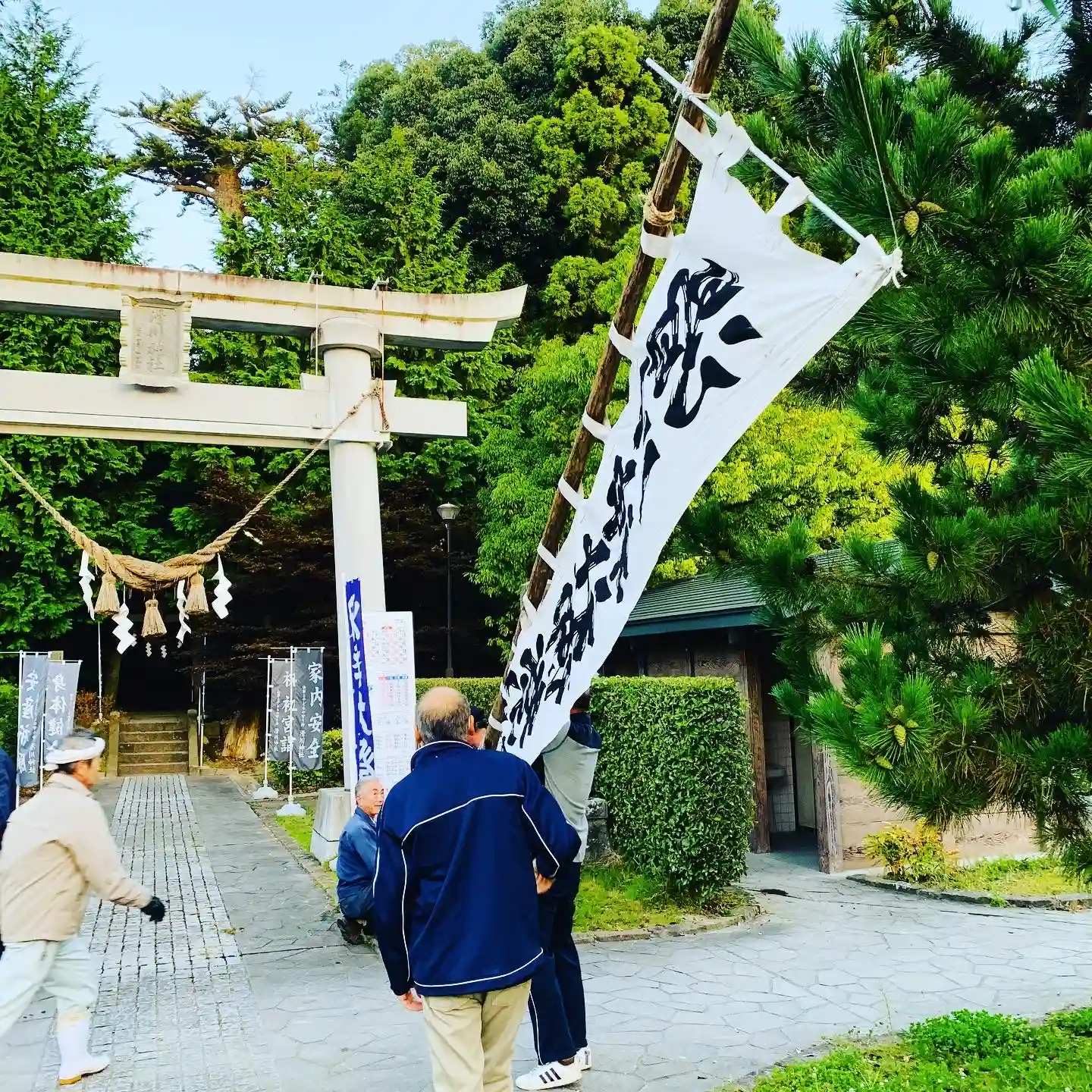 昨日は早朝から、総代さん、奉斎会の皆さんのご奉仕により境内および町内各所に祭礼旗をたてました。