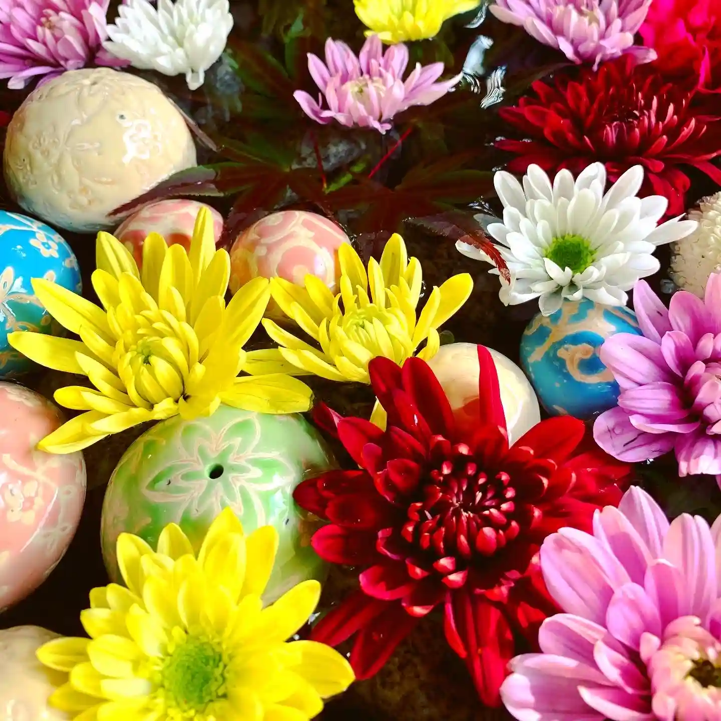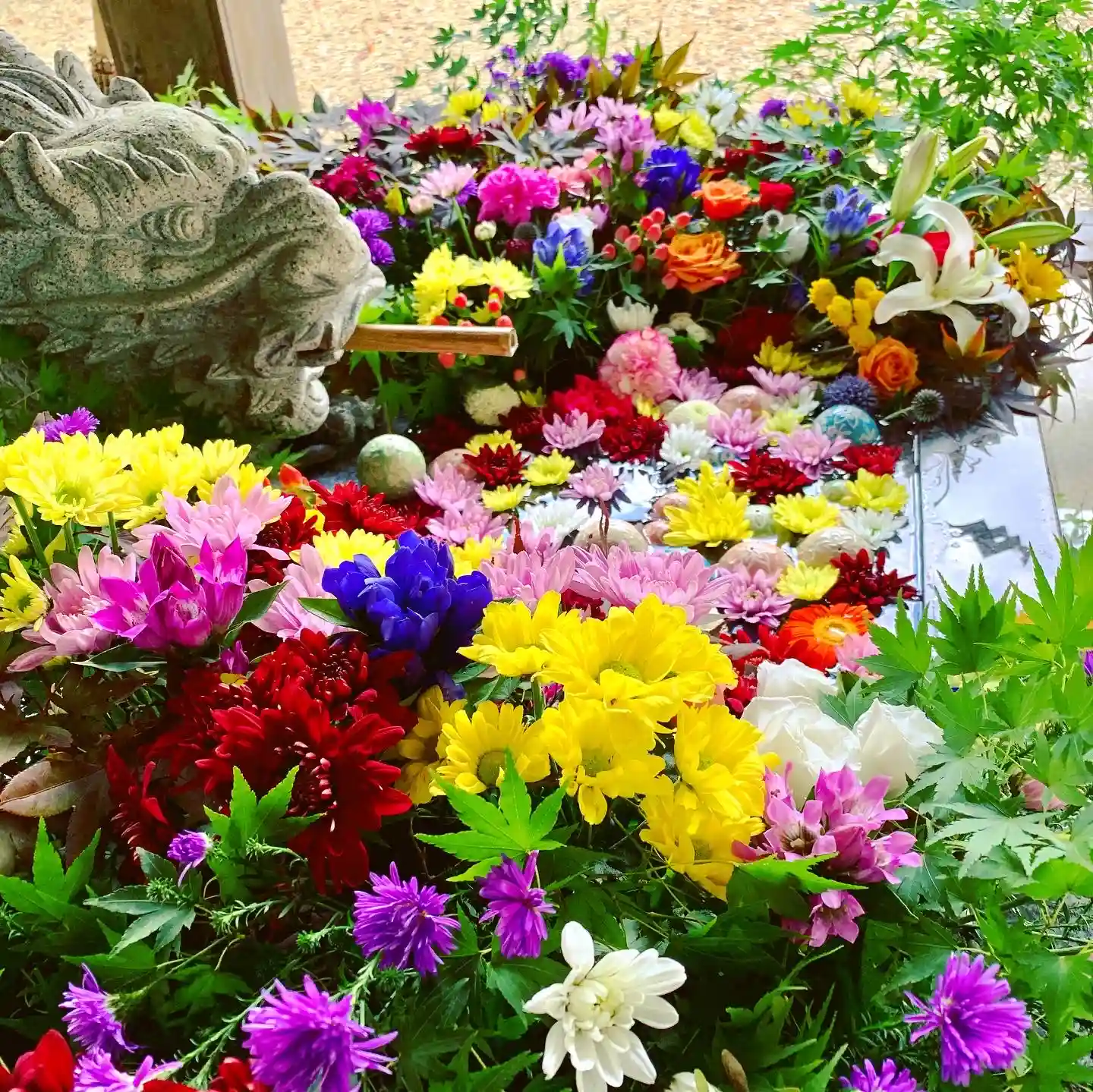 秋季例大祭の準備でバタバタしており、なかなかお花を入れ替えることが出来ませんでしたが、本日、心を込めて「花手水」を整えました。