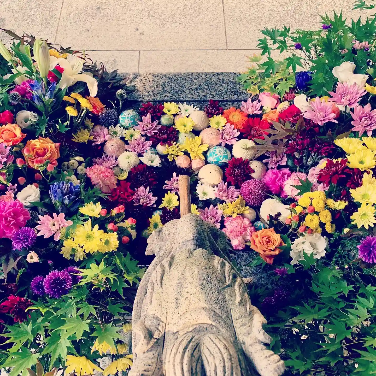 皆さんの「真心」でつくられた「花手水」、ご参拝の折には、どうぞご覧ください。お花のご奉献もお待ちしております。