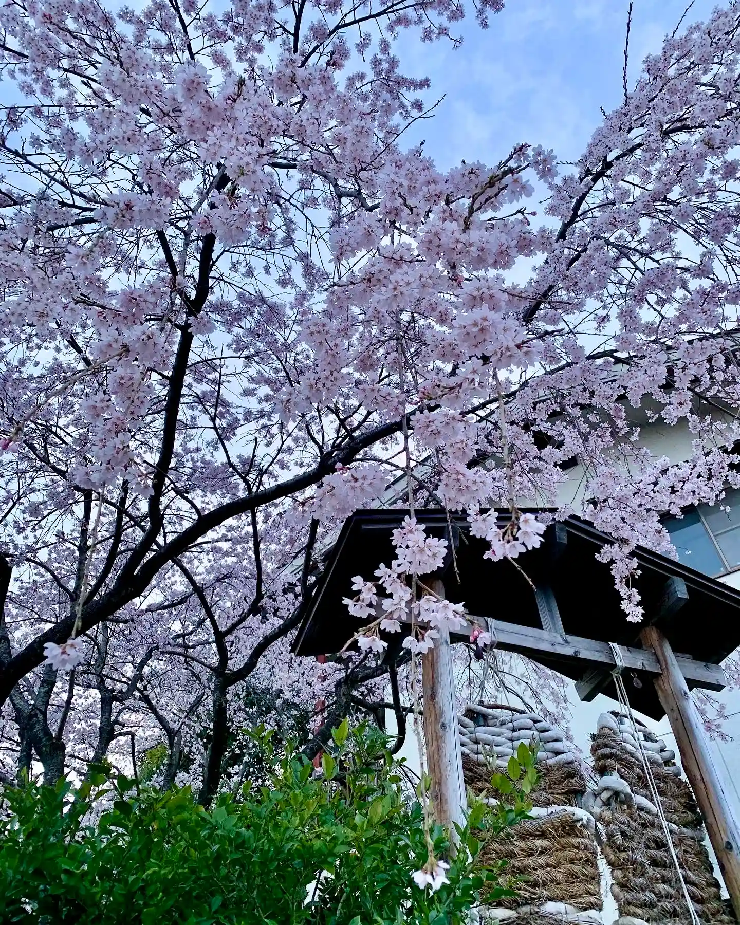 昨日の夕方、用事があって、お隣の地域の鎌足神社さんへ。枝垂れ桜が満開でした!