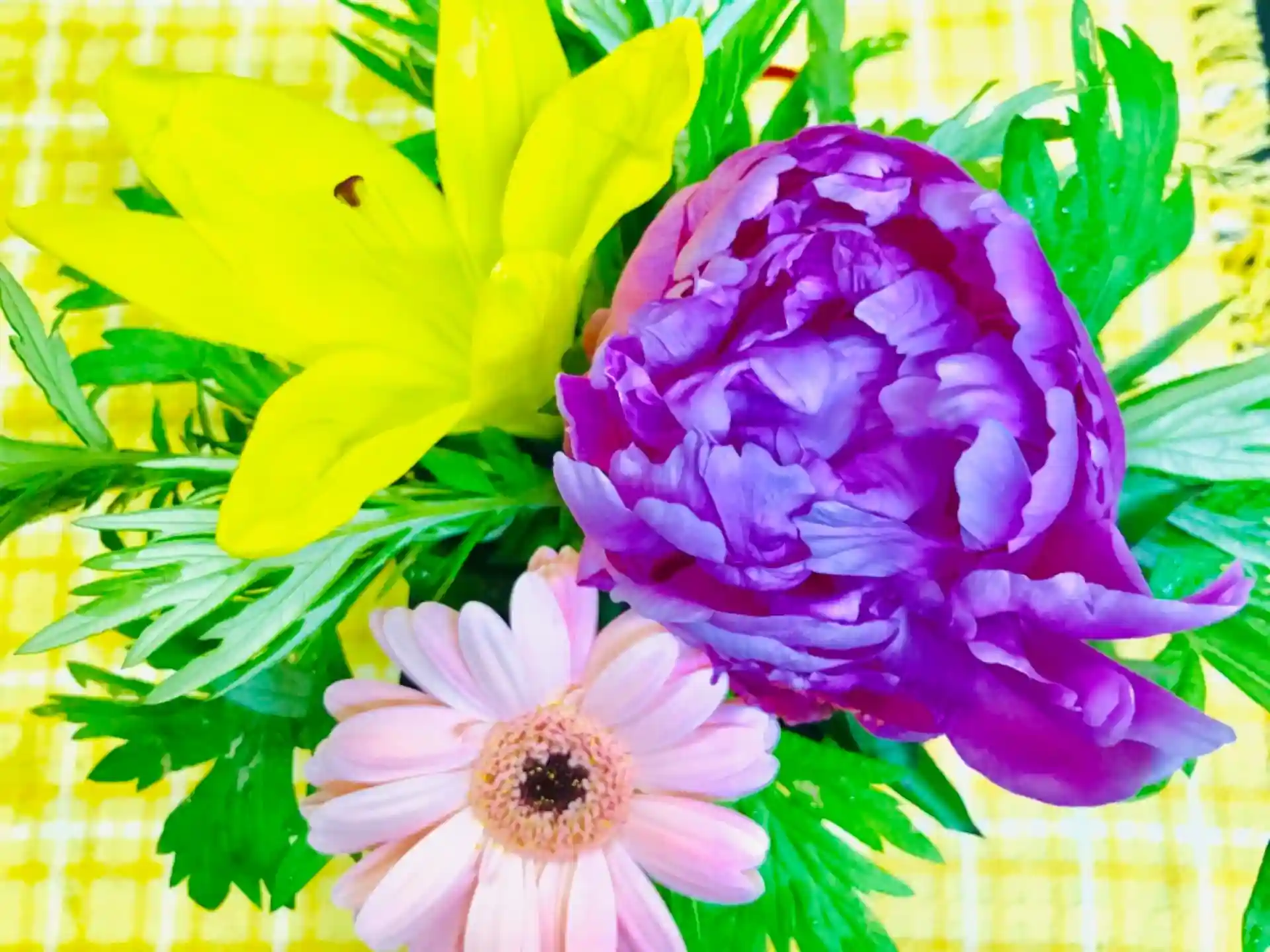 真ん中より少し右にシャクヤクの花を挿します🌸