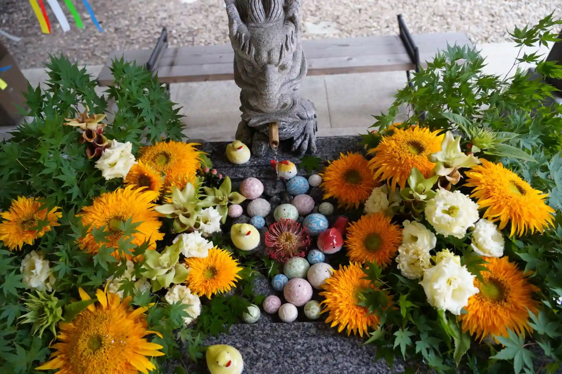 現在の花手水は、東京オリンピックのメダリストに送られる「ビクトリーブーケ」をイメージしたそうです。