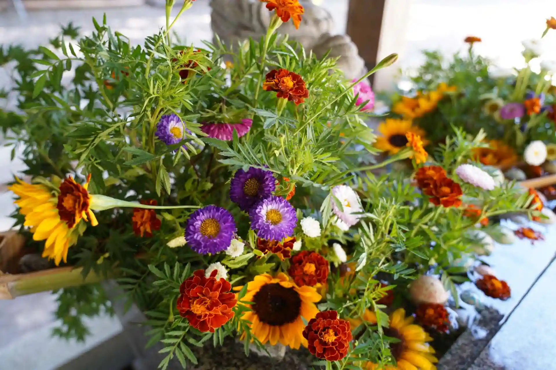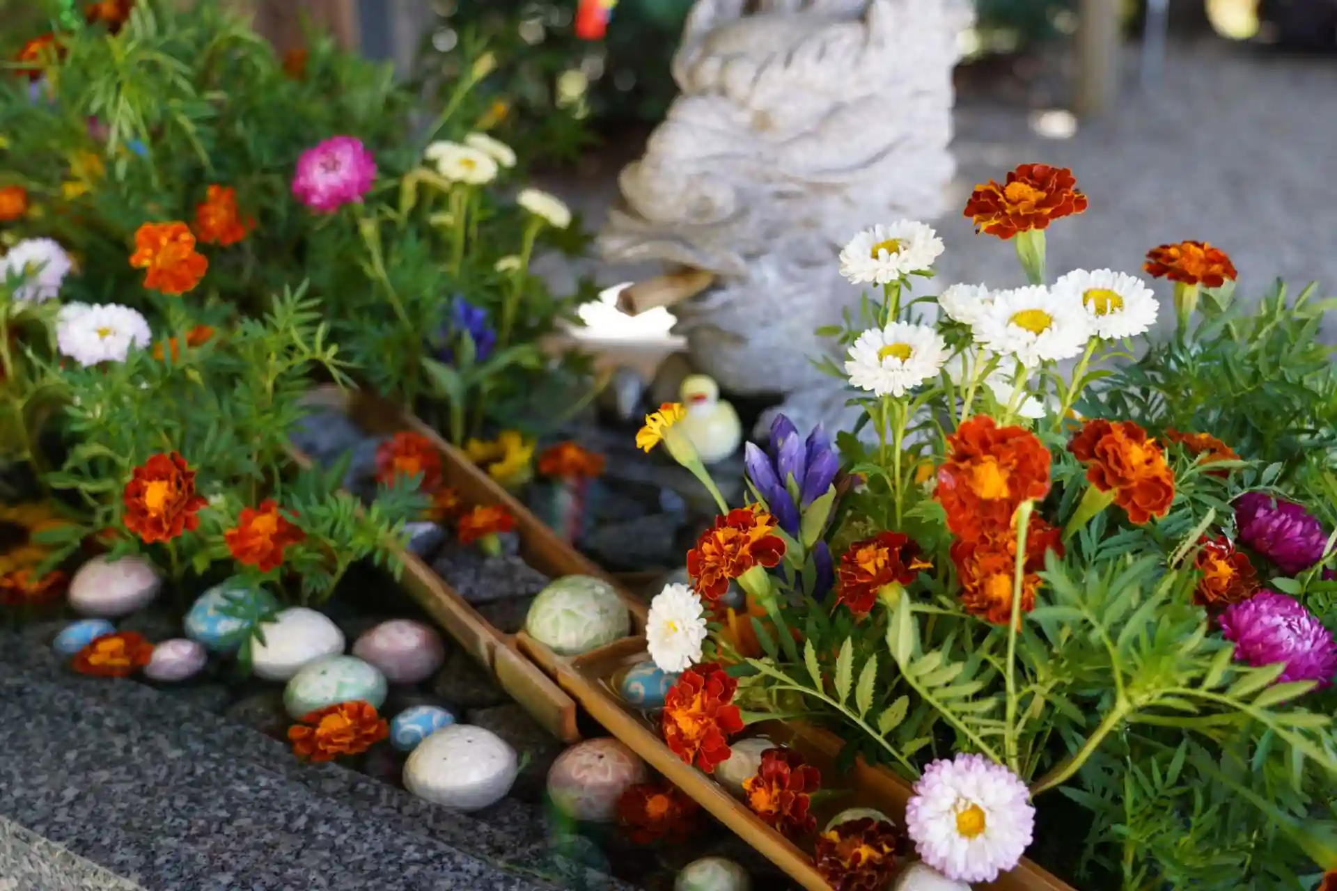 相変わらず素敵な花手水に感激しています。