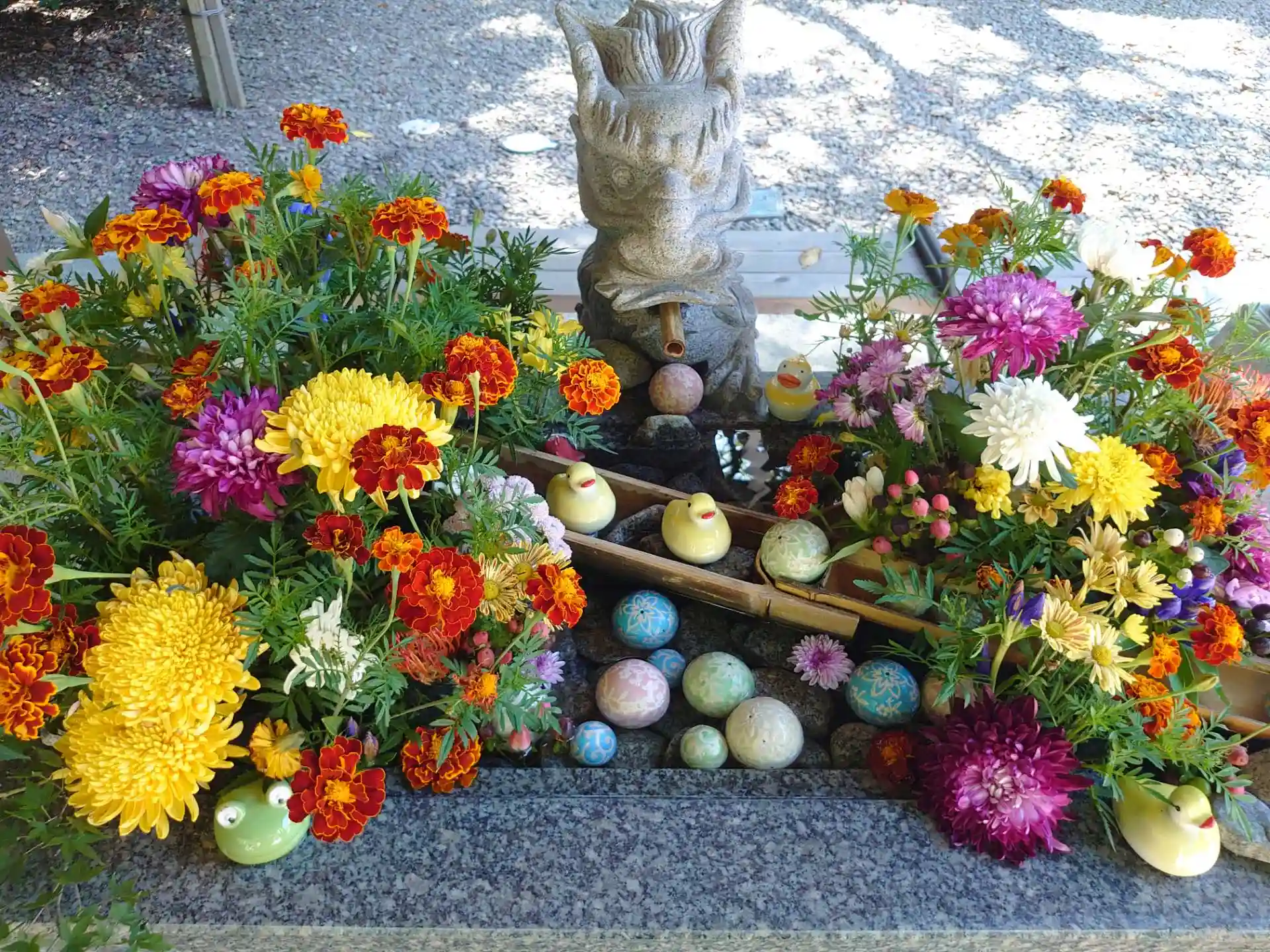 今日は十五夜なので限定の御朱印と月替りの御朱印を頂きました!天気もよく花手水のお花がキレイであーでもこーでもないと写真撮りまくってました(笑)でも菊の節句の飾り付け見たかったけどタイミング合わず行けませんでした💨
