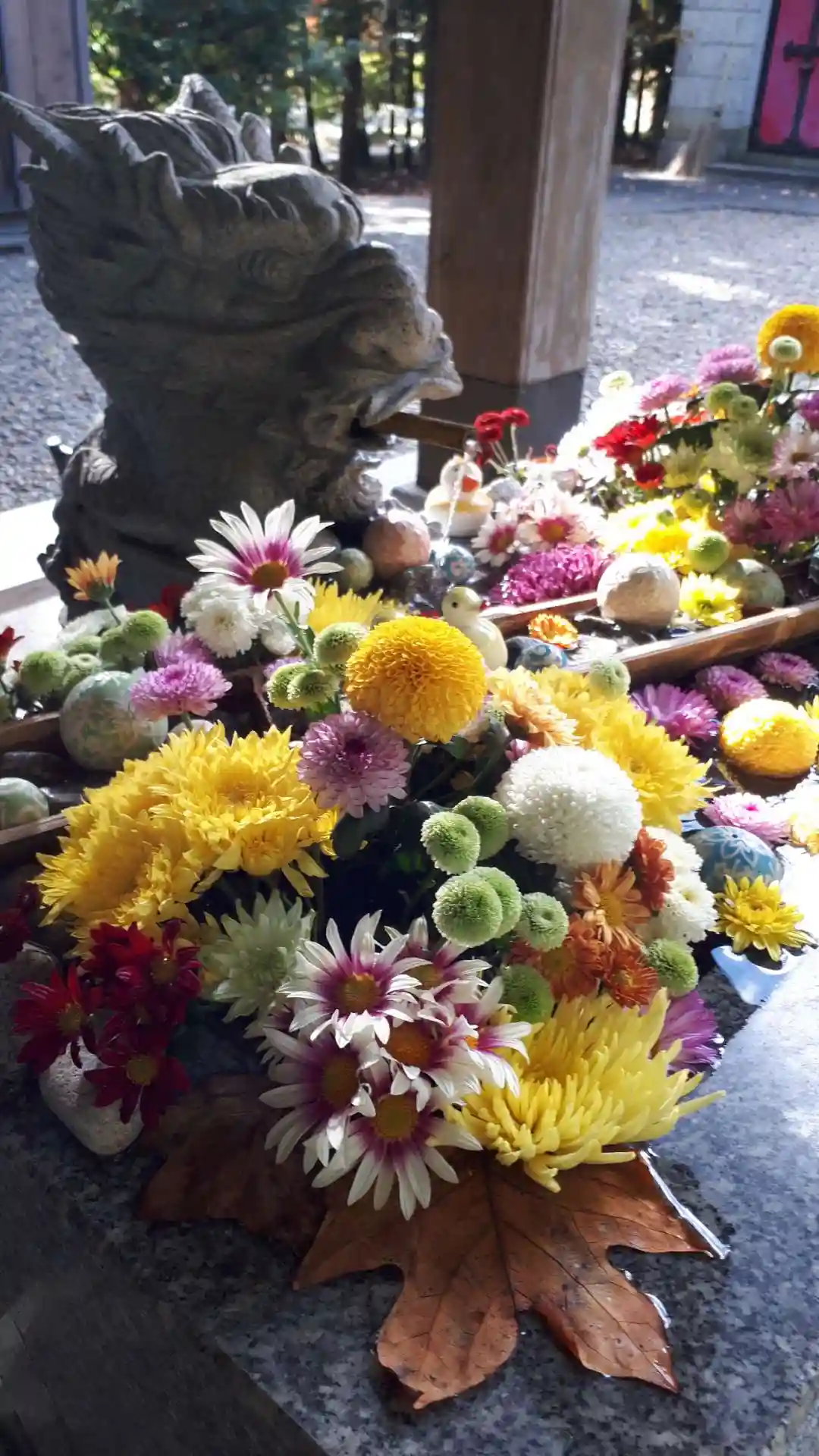 前日の夜に三時間かけて生けた禰宜さま渾身の花手水‼️