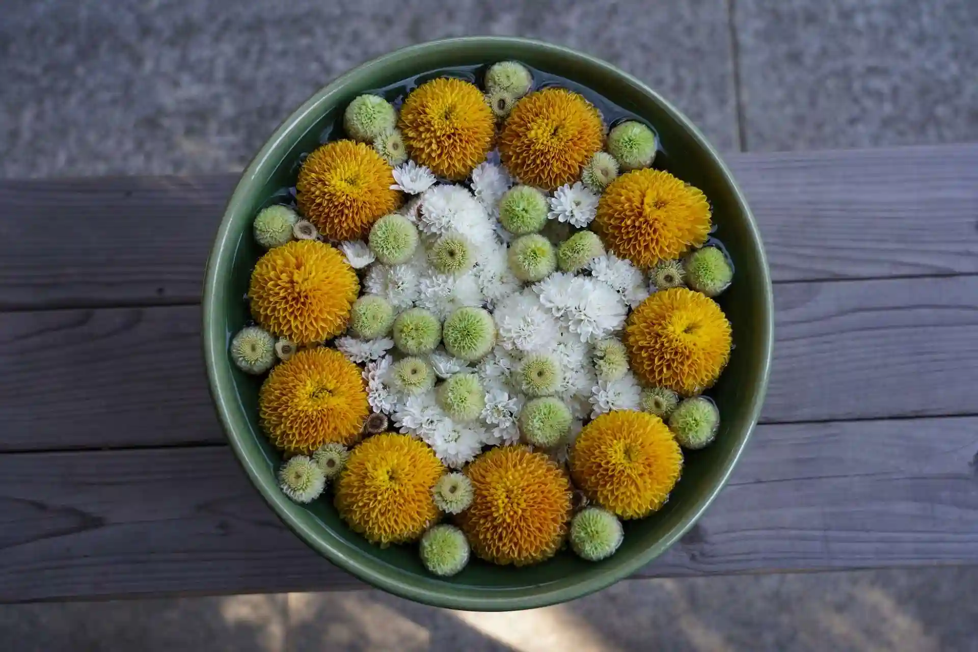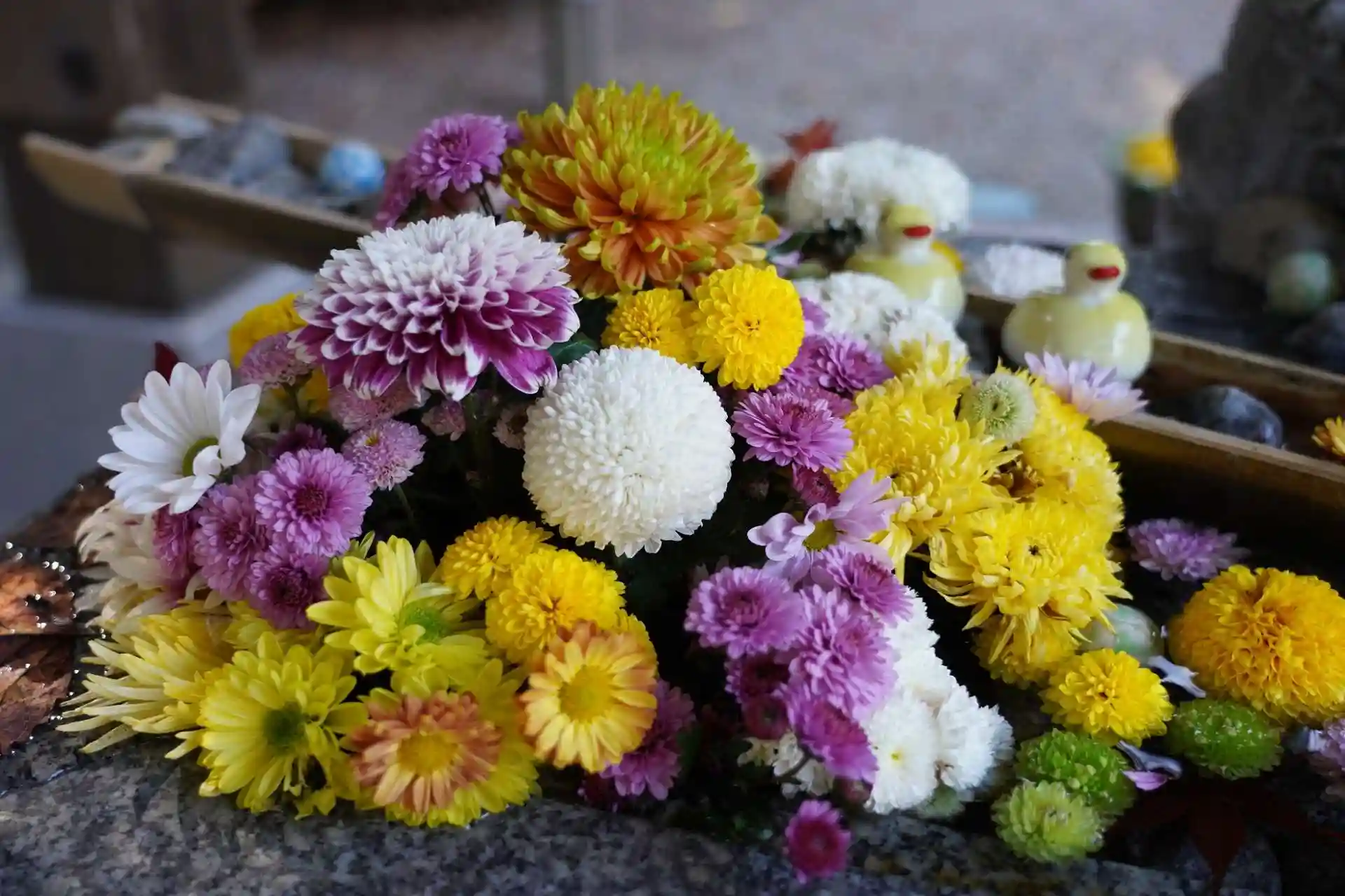 菊の花手水が今日も素敵でした。