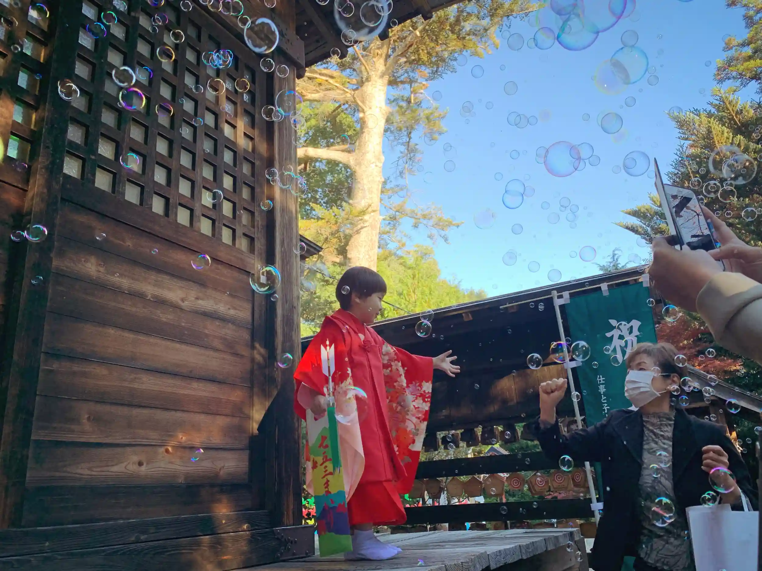ご祈祷中、静かに頑張ったご褒美のシャボン玉。とっても喜んでくれて、ダンスまで披露してくれました!