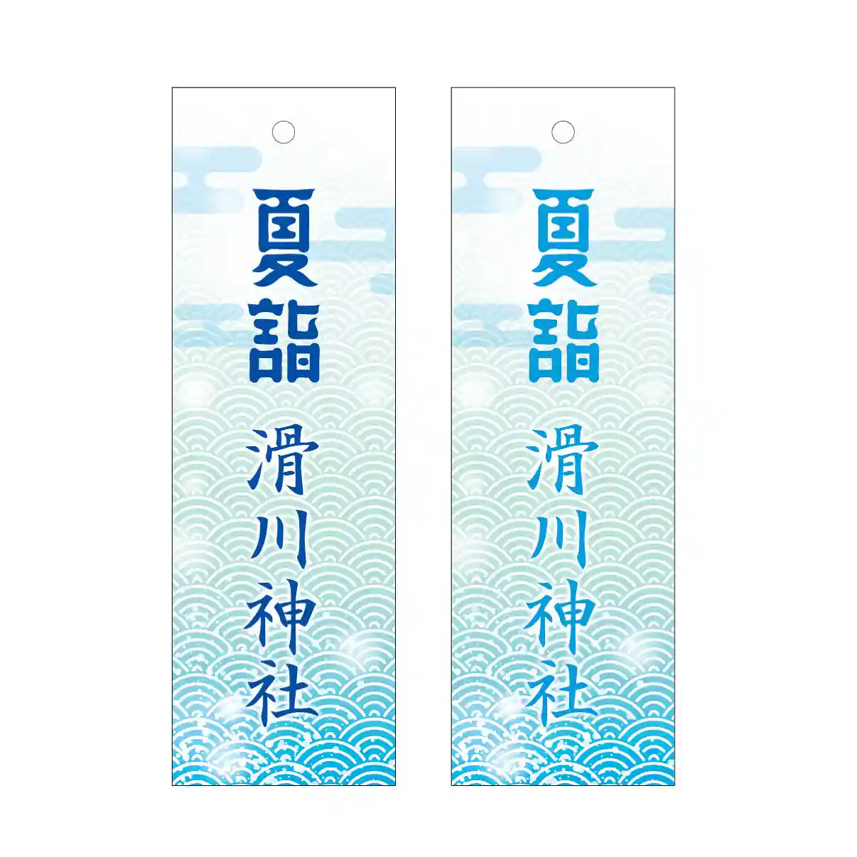 写真は、境内に飾りつける「風鈴」の短冊デザイン。「青海波」文様と、青い色合いの涼しげなデザインになりました。