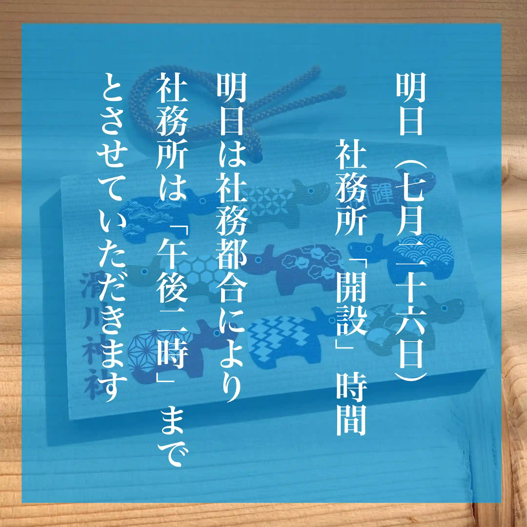 明日の社務所「開設」時間について
