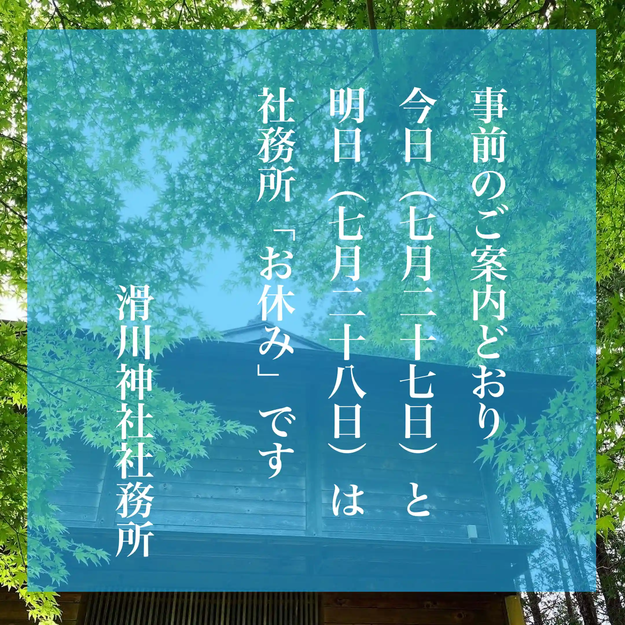社務所「お休み」のご案内
