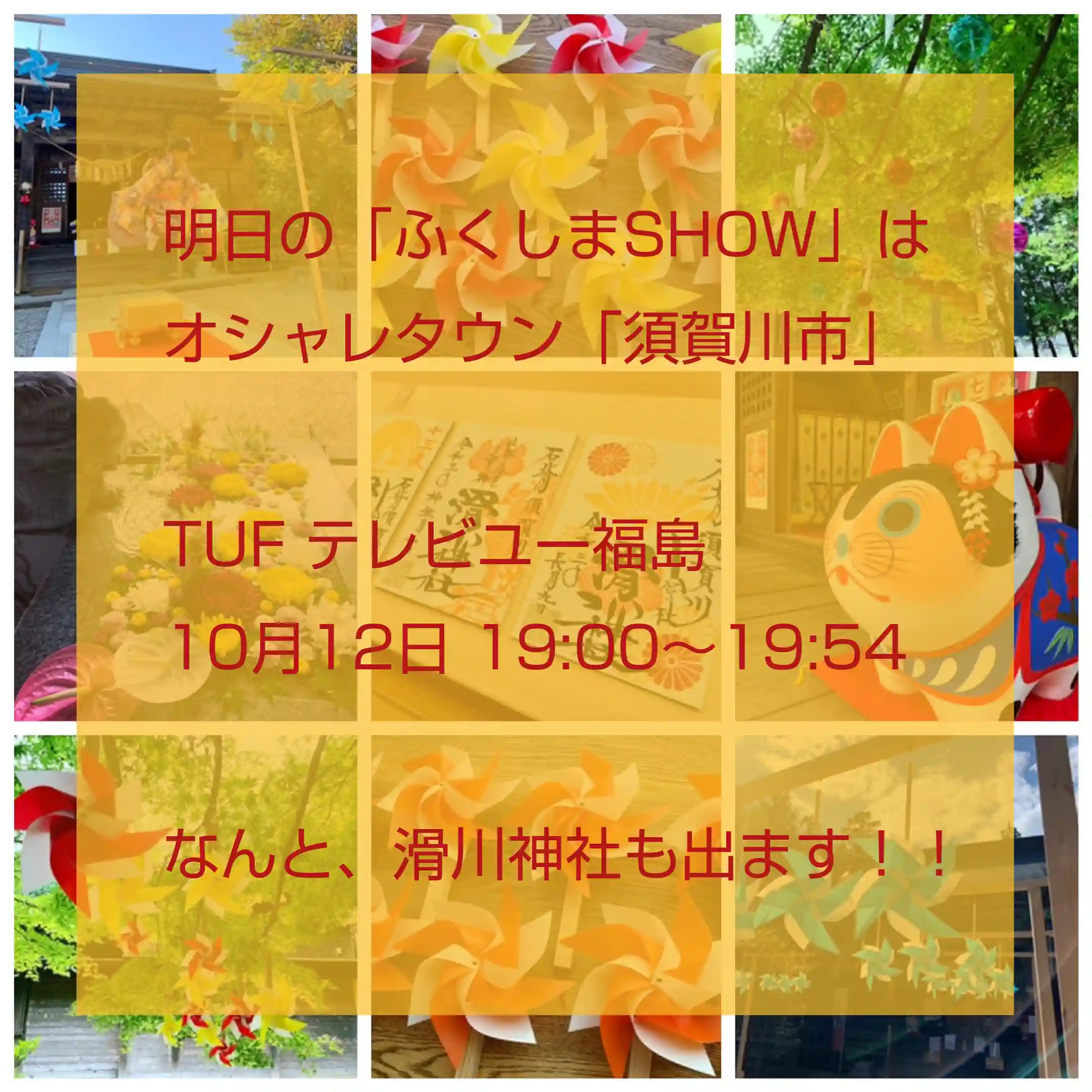 ふくしまSHOWは県内の59市町村の魅力を伝える番組。以前に須賀川市の放送を視聴したとき、もしまた須賀川市の特集があれば、いつかは「須賀川」の「魅力」として取り上げてもらえるような「神社」にしようと思って