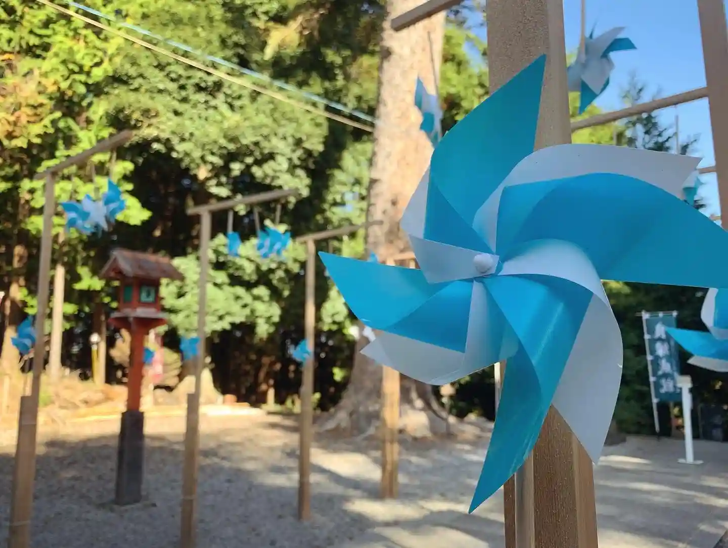 昨日(10月26日)は、平日でしたが大安ということもあり、初宮詣のご祈祷をご奉仕いたしました。背景の青空と相まって、社前の空色の「風ぐるま」がとても綺麗でした。
