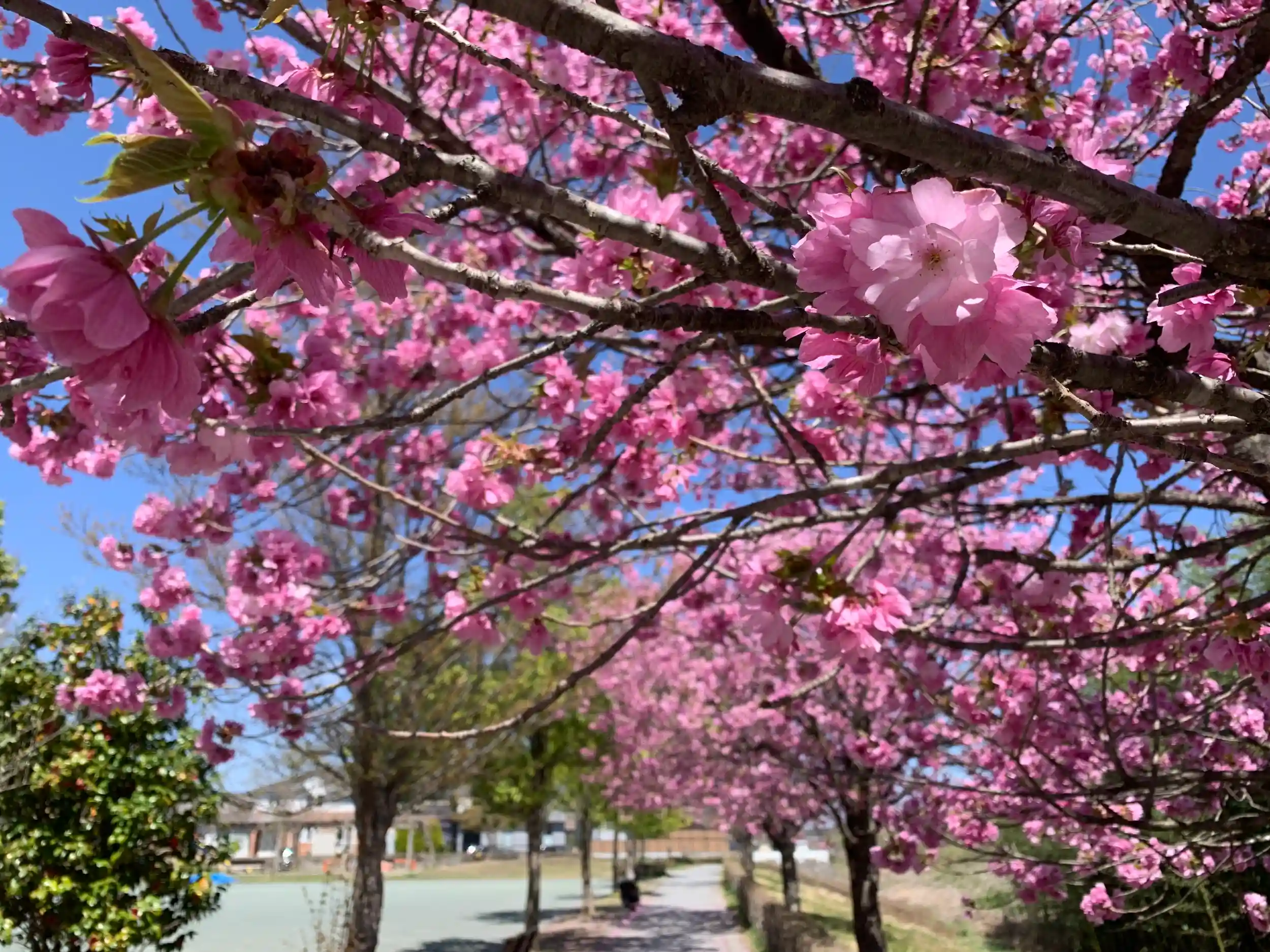 神社前の宮の杜公園の「八重桜」も満開