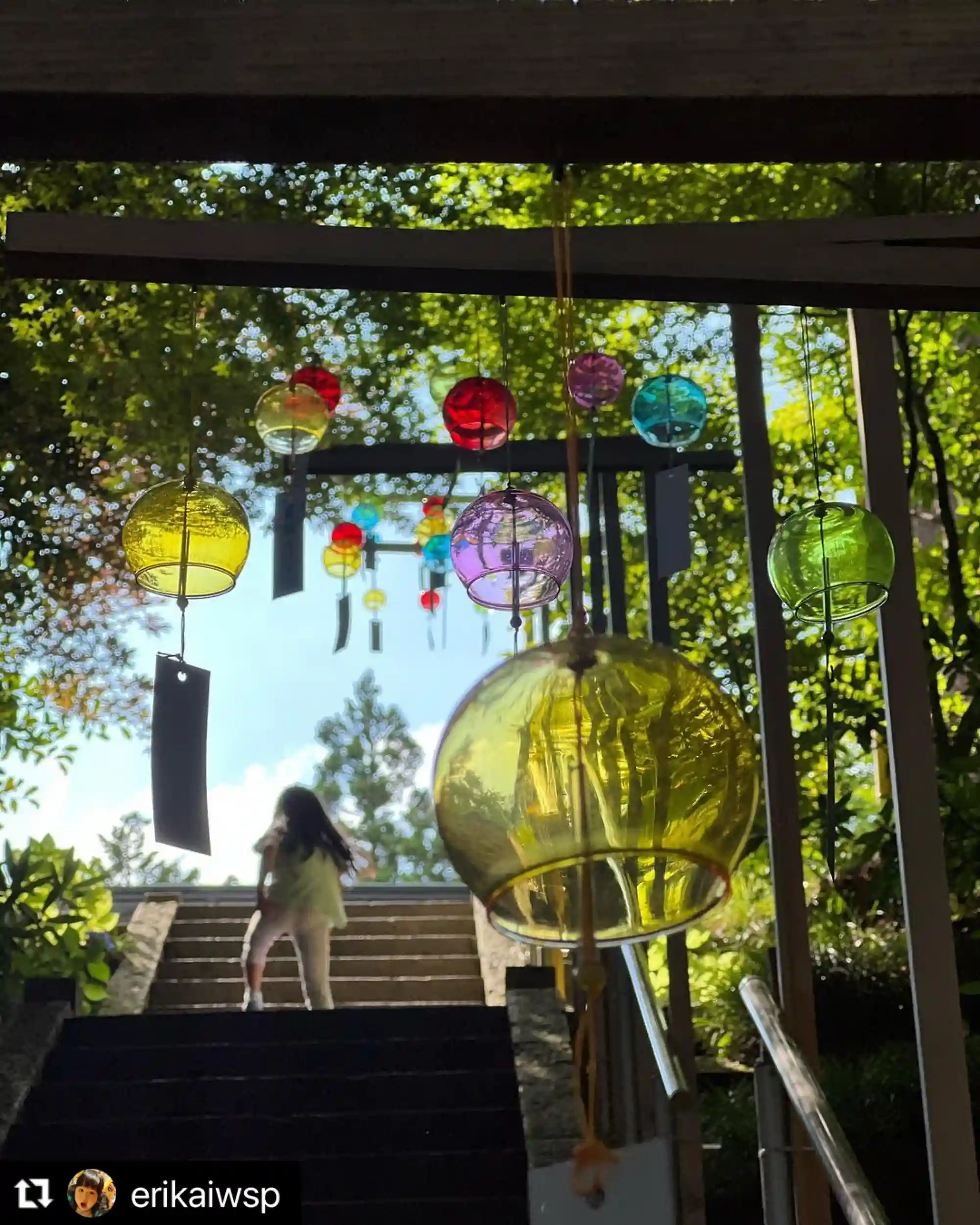 Instagramアカウント@erikaiwsp さんの投稿写真をご紹介させていただきます。参道に飾りつけた「風鈴」を綺麗に撮っていただきました。
