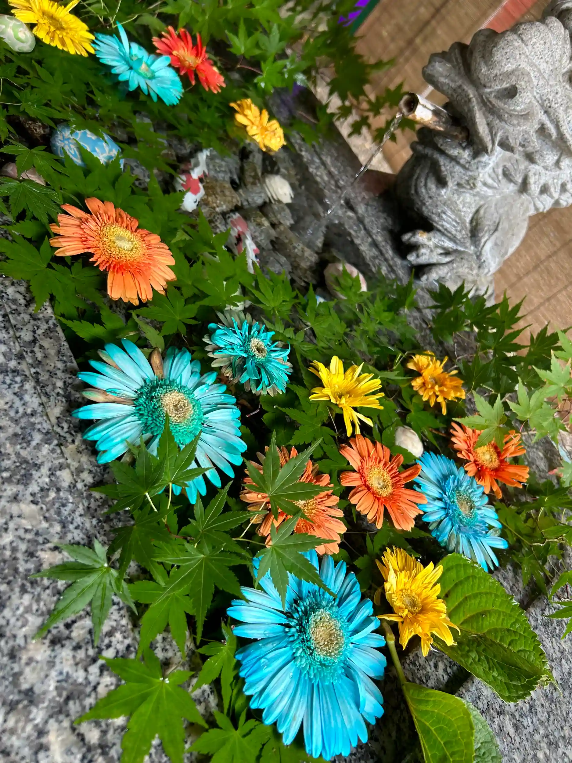 手水舎の花も入れ替わっており、夏の明るさや爽やかさを感じられる色合いでした。