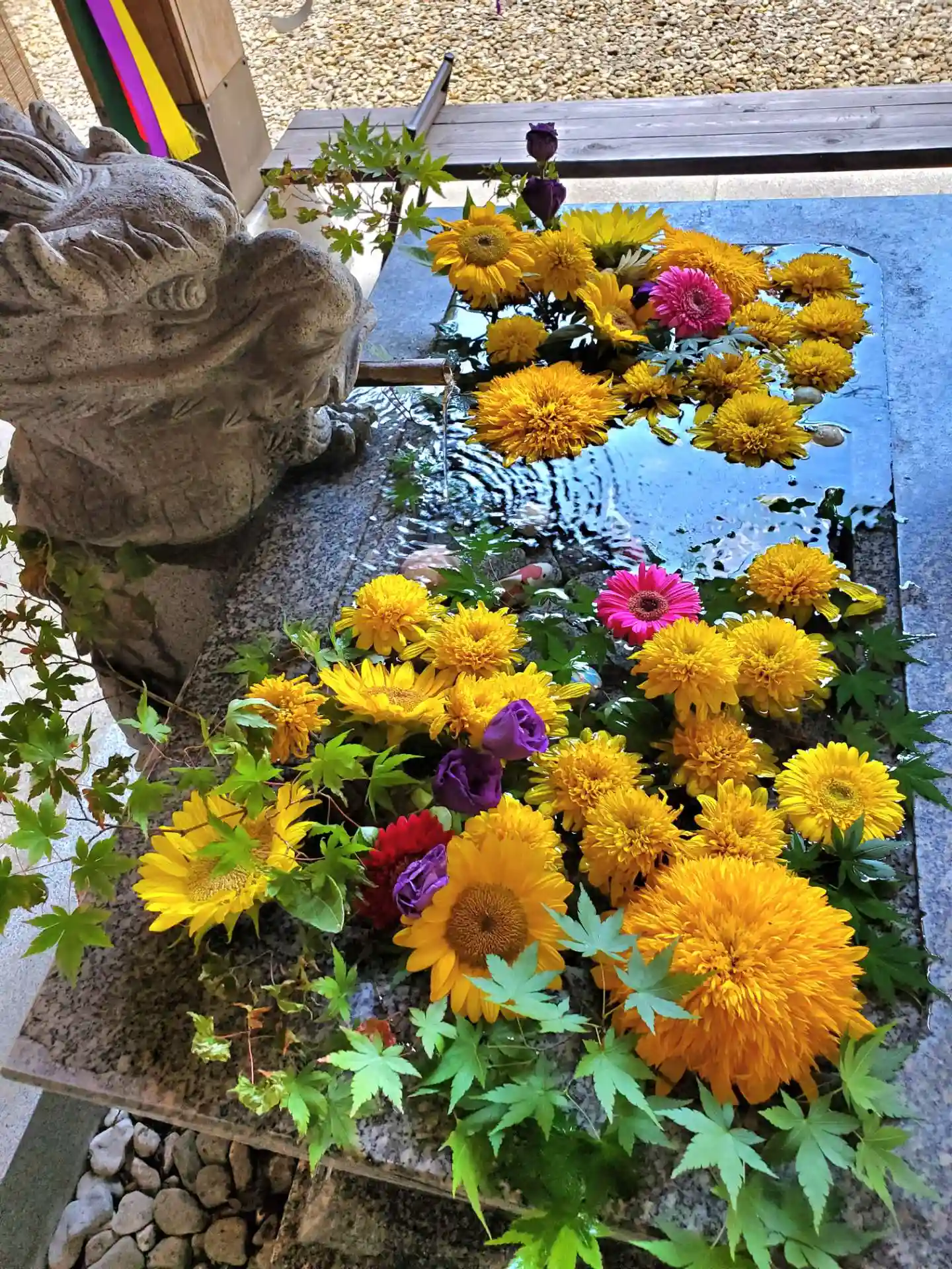 流れる水、境内の🎐風鈴の音色が、真夏日に涼感を与えてくれます🎵