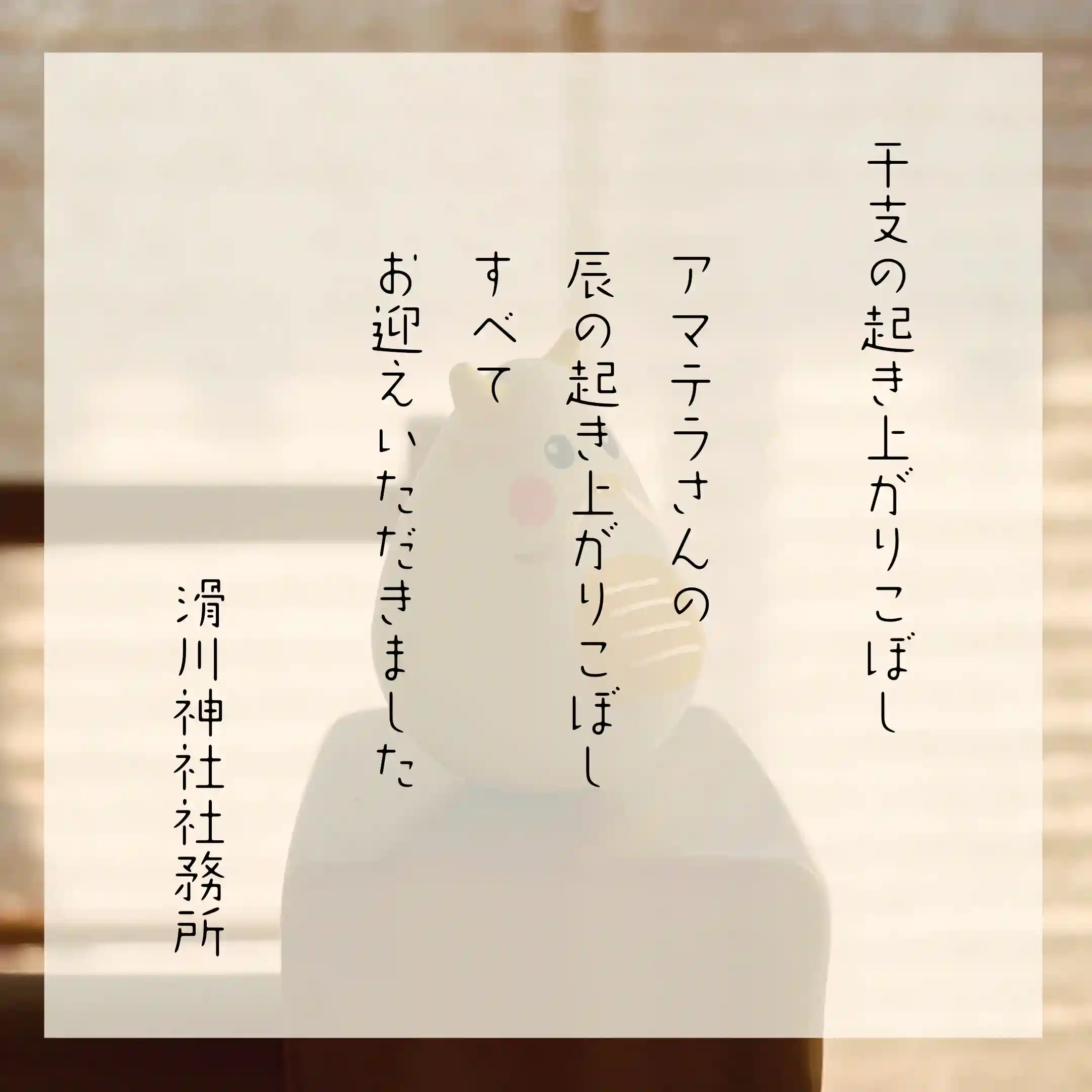 アマテラさんの干支の起き上がりこぼしですが、全てお迎えいただきましたので、滑川神社でお預かりしている分は今はありません。