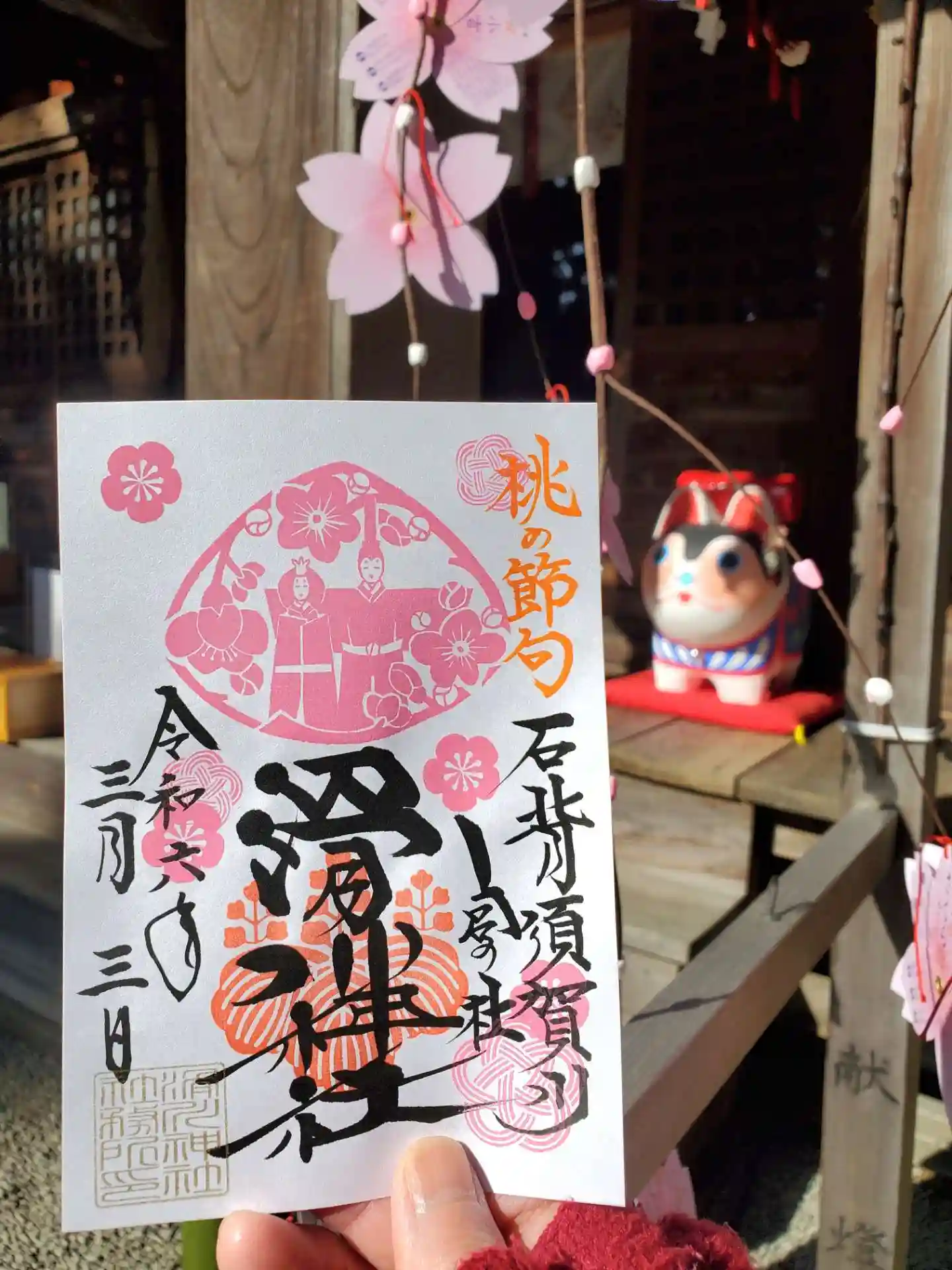 3/3当日の御朱印には『桃の節句』が朱文字で書かれてます😊