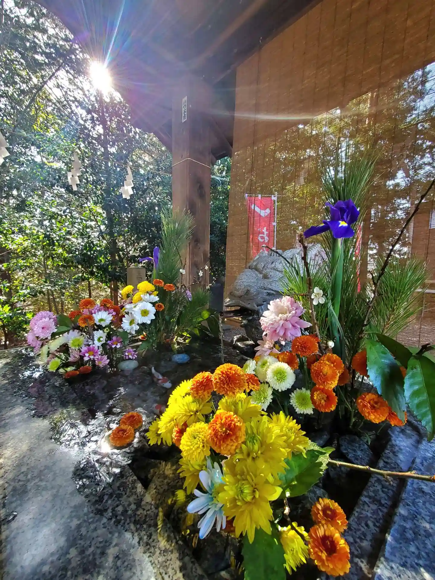 花手水も綺麗に整えられ、サクラみくじも鮮やか🌸🌸🌸