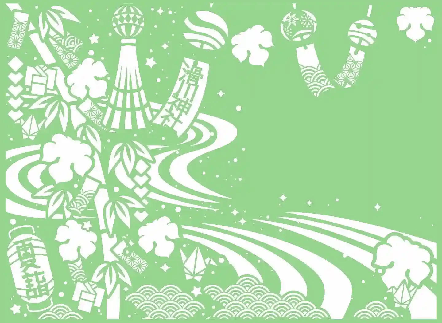 昨年は、笹飾りや梶の葉短冊、風鈴などの境内の飾りつけと、天の川(滑川神社の滑川)をデザインに取り入れて切り絵御朱印を作りましたが、今年は、そのデザインを左右反転させて少し修正を加えました。