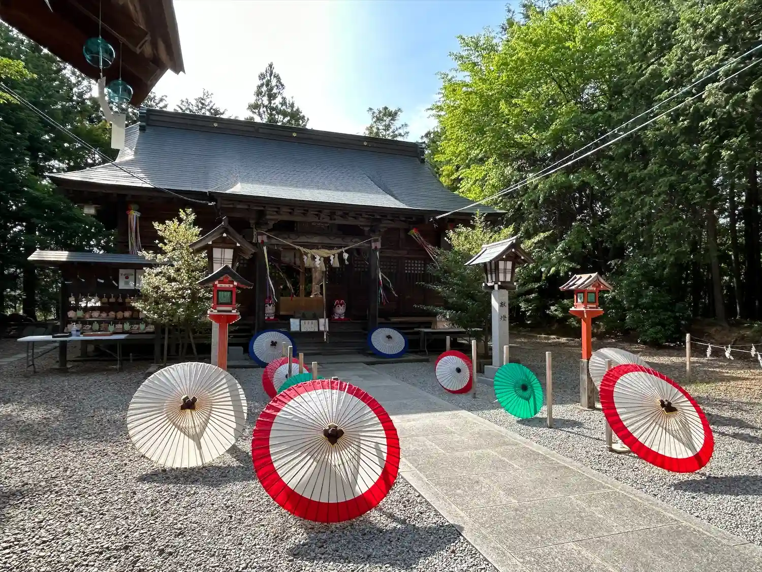 今月の月詣です。今日はとても暑い日でしたが、境内に飾られた和傘や風鈴と心地よい風で涼やかな雰囲気でした。
