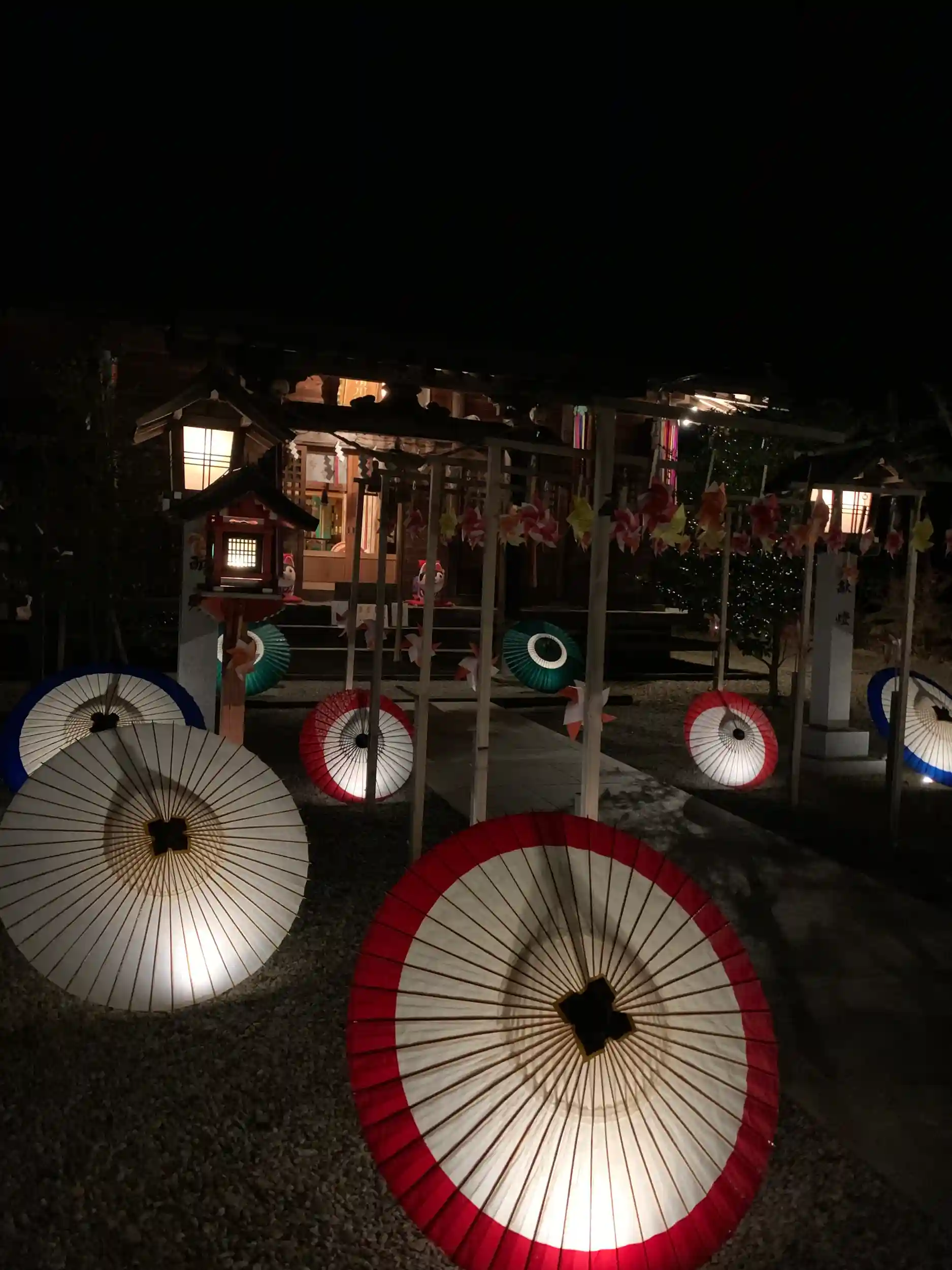 少しでも須賀川の魅力が伝わればと、滑川神社でも昨日、一昨日の二日間だけですが、境内に和傘を飾り、夜にはライトアップをしました!
