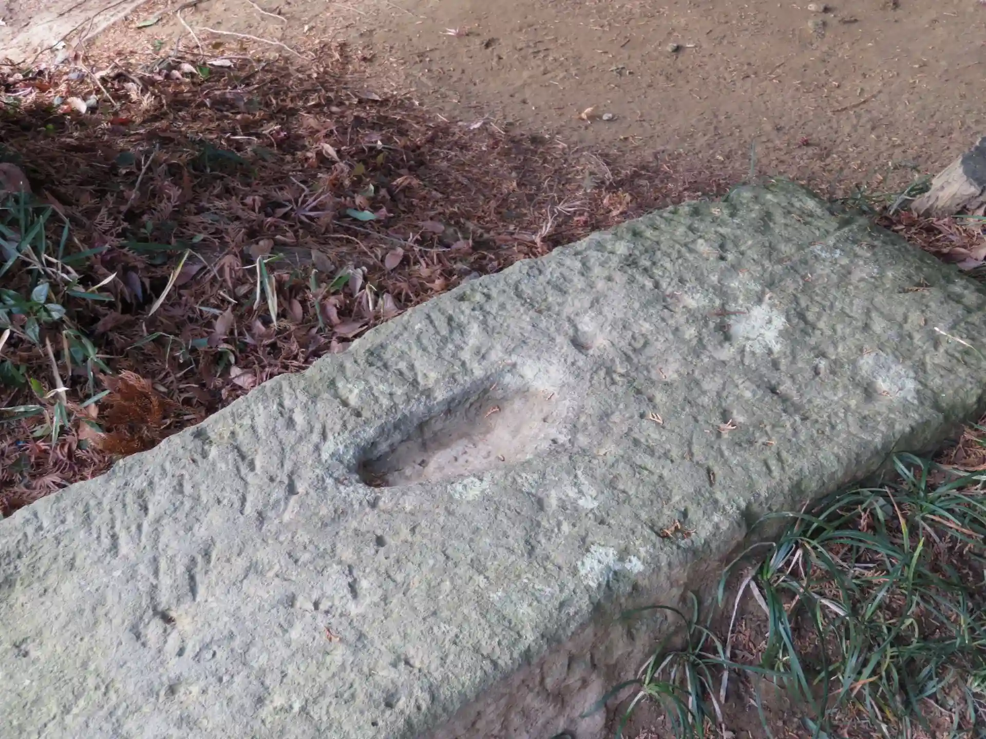 一の鳥居横に窪みのある石がありました