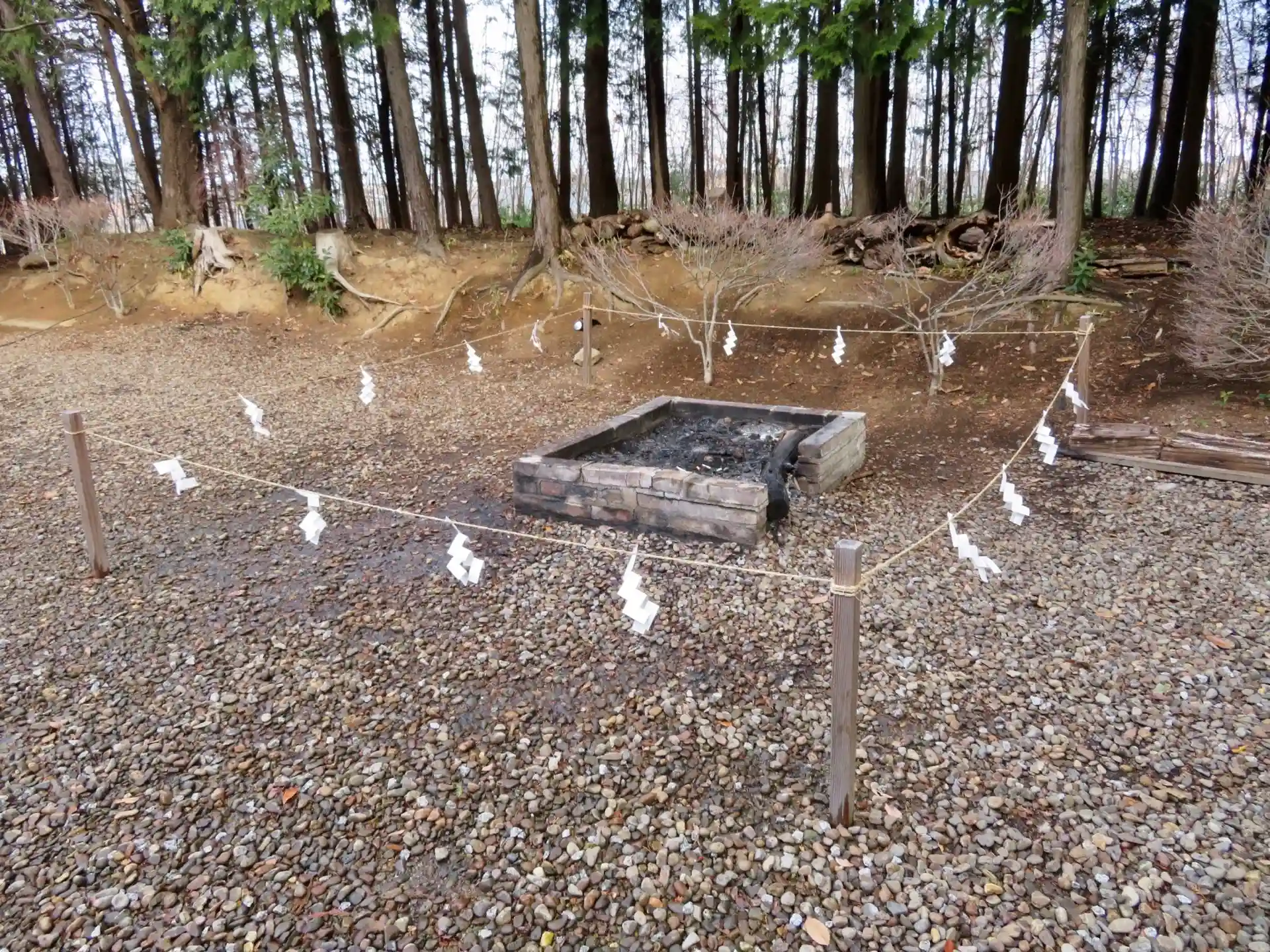 拝殿前には火を焚くスペースがありました