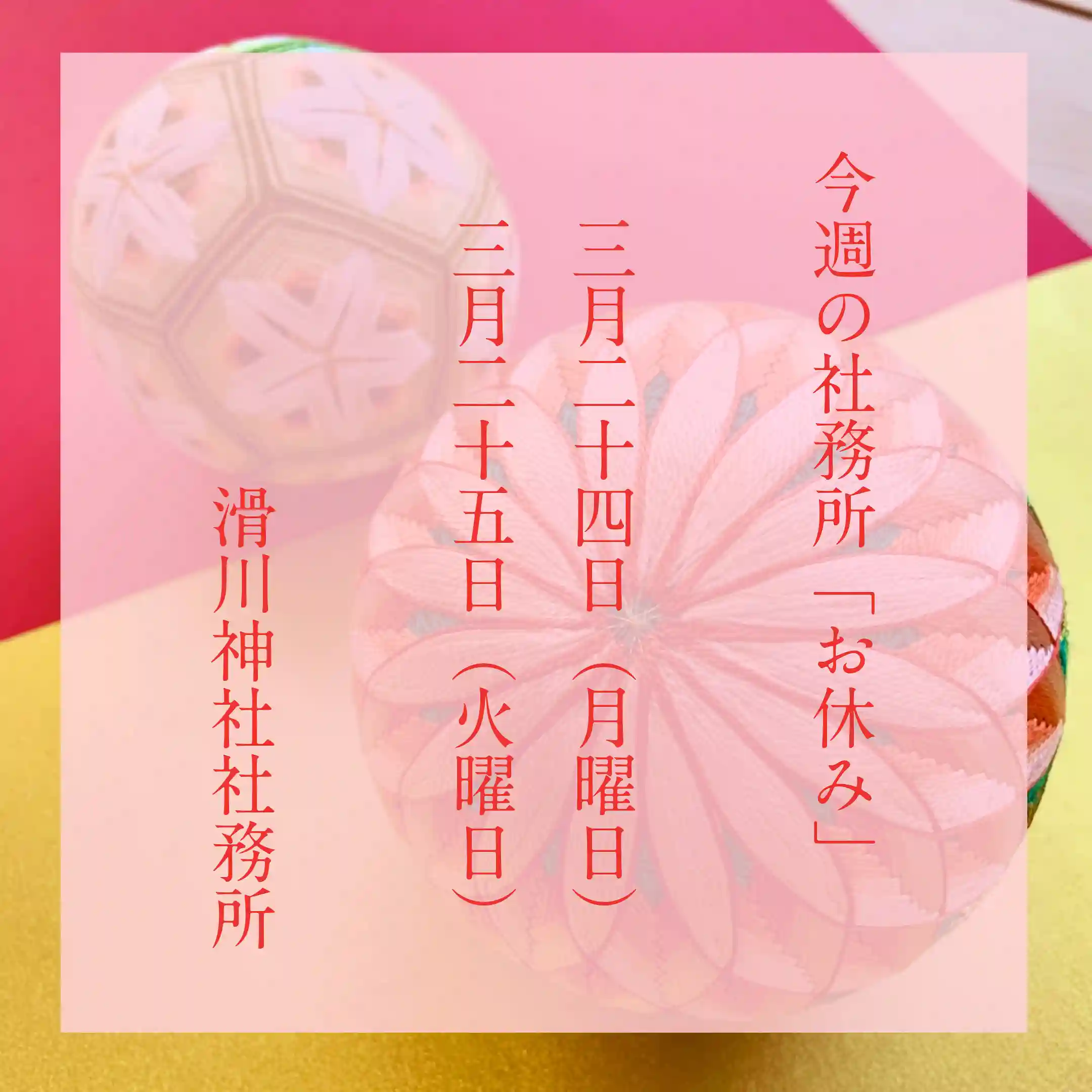 社務所「お休み」について