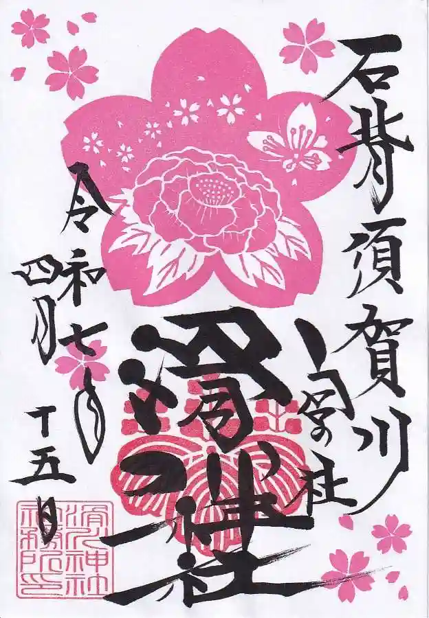 4月の御朱印「桜に牡丹、サクラ飛び蝶」を