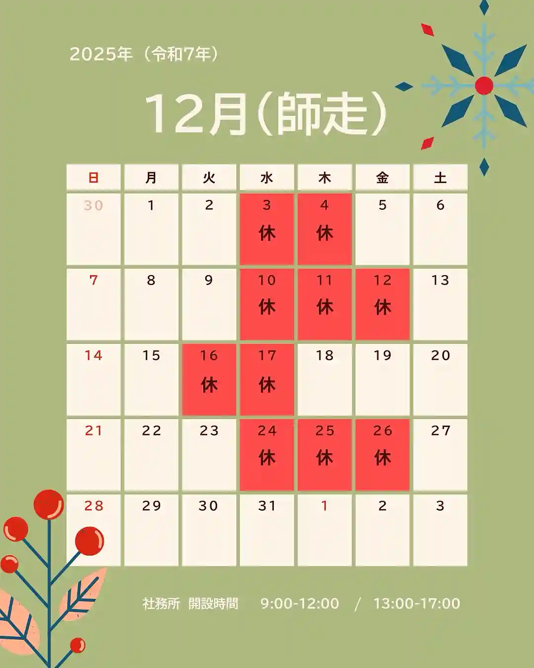 12月の社務所「お休み」